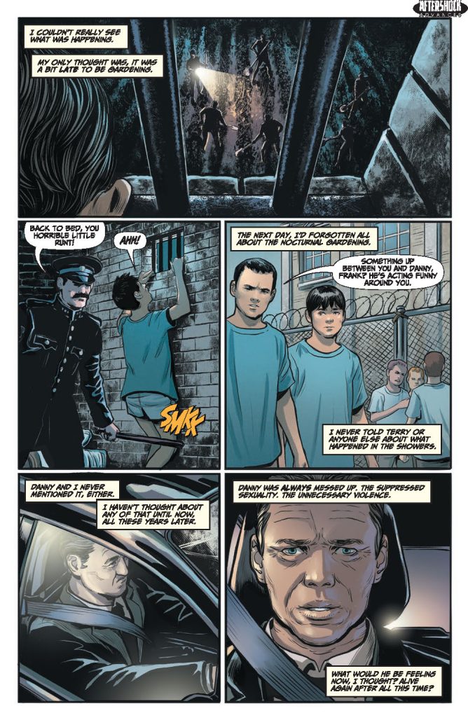 Next week AfterShock Comics will release Dogs of London #4. The latest issue of the crime series comes from writer Peter Milligan, artist Artecida, colorist Valentina Bianconi, and letterer Rob Steen. Today The Beat can share an exclusive preview of the issue, which finds Frank reminiscing on times past both good and bad.