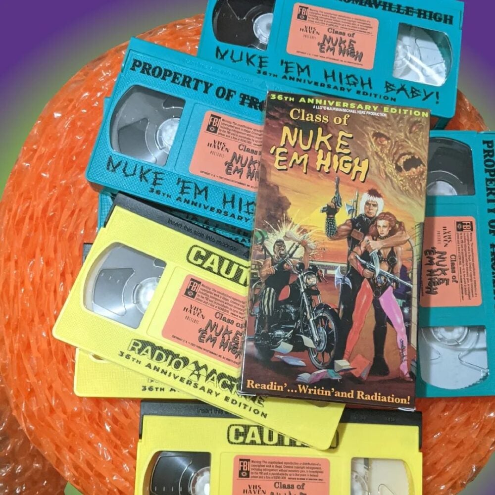 It’s not a horror movie or anything, but it’s something that he originally put out on tape, and it’s a really rare tape, and it’s awesome. This edition that he did the first tape as is, I think, the best version that’s out there, and there’s not even a good copy on the internet. And so we got the master from Ivan Stang, from his garage that he used to make the original tapes. And we have some other stuff from Troma. We have Nerds of a Feather that’s about to come out. It’s just a comedy, but it’s a goofy comedy. It’s one of those things where it kind of was only distributed on tape, and Troma just has a master that’s recorded on tape. So that’s why it lends itself to it. It’s going to be fun to watch on tape versus on Blu-ray. We’ll give it just a little bit extra, but it’s also bringing back to life a lot of those movies shot on tape specifically. That’s the life they had, and that’s a delight. I mean, it’s great to see everything in as super high resolution as possible, but, it’s for the people that do collect. And if you have a CRT and you have a VCR, you can buy something off the internet, have it shipped to your house, pop it in – it’s a cool experience. So that’s what we’re trying to provide. There’s Blu-ray and all that, but we’re not trying to compete with that. We’re something else.
