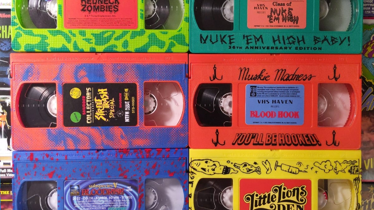 It’s not a horror movie or anything, but it’s something that he originally put out on tape, and it’s a really rare tape, and it’s awesome. This edition that he did the first tape as is, I think, the best version that’s out there, and there’s not even a good copy on the internet. And so we got the master from Ivan Stang, from his garage that he used to make the original tapes. And we have some other stuff from Troma. We have Nerds of a Feather that’s about to come out. It’s just a comedy, but it’s a goofy comedy. It’s one of those things where it kind of was only distributed on tape, and Troma just has a master that’s recorded on tape. So that’s why it lends itself to it. It’s going to be fun to watch on tape versus on Blu-ray. We’ll give it just a little bit extra, but it’s also bringing back to life a lot of those movies shot on tape specifically. That’s the life they had, and that’s a delight. I mean, it’s great to see everything in as super high resolution as possible, but, it’s for the people that do collect. And if you have a CRT and you have a VCR, you can buy something off the internet, have it shipped to your house, pop it in – it’s a cool experience. So that’s what we’re trying to provide. There’s Blu-ray and all that, but we’re not trying to compete with that. We’re something else.