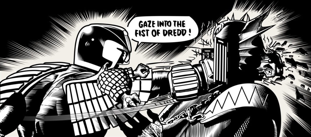 Borag Thungg, Earthlets! And here we are again to gather around the fire and talk about the Galaxy’s Greatest Comics, 2000 AD, and more specifically — Judge Dredd! It’s been a really busy month with tons of titles hitting the shelves, Thought Bubble taking place at the beginning of the month in Harrogate, and HEAPS of news about what we can expect in the future.