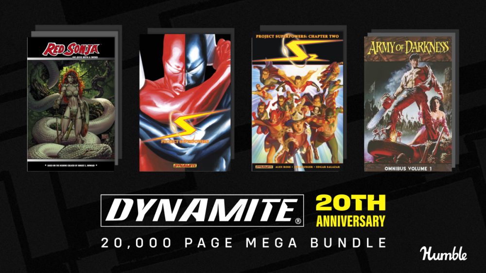 The bundle will include the best work from creative minds of Garth Ennis, Alex Ross, Gail Simone, Christopher Priest, Tim Seeley, Amy Chu, Al Ewing, Rick Remender, Kevin Smith, Mike Carey, Kieron Gillen, Jason Shawn Alexander, Dan Abnett, Mark Millar, Grant Morrison, Roy Thomas, Frank Thorne, Peter Milligan, Rob Williams, Nancy A. Collins, and so many more. The 20th anniversary bundle will include titles such as Red Sonja, Product Superpower, and Army of Darkness, the latter of which was Dynamite’s debut title when it launched in 2004. As of this article’s writing, 244 mega bundles have been sold.