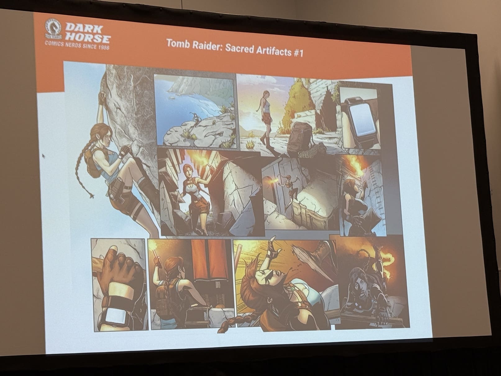 On the subject of licenses, the panel then turned it over to writer Casey Gilly to discuss her work on the Tomb Raider license such as the the Tomb Raider: Sacred Artifacts 4 issue miniseries. Though she’s written creator-owned books, Gilly relishes writing licensed comics. In fact, she started her comics writing career writing licensed books like My Little Pony and Buffy and can’t imagine ever abandoning licensed projects. Writing licensed comics isn’t as rigid as people might think according to Gilly. Moroever, she appreciates the fact that licensed comics because come in with guardrails baked in and actually enjoys a hands-on approach.