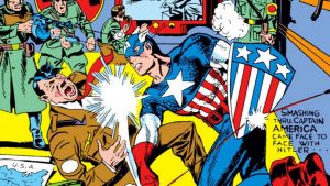 Here’s the sort of thing Simon & Kirby were concerned about when they created Captain America: in 1939, some 20,000 Americans gathered at Madison Square Garden to cheer for fascism. The railing against the “Jewish-controlled press” was no different from what today’s neo-Nazis say.