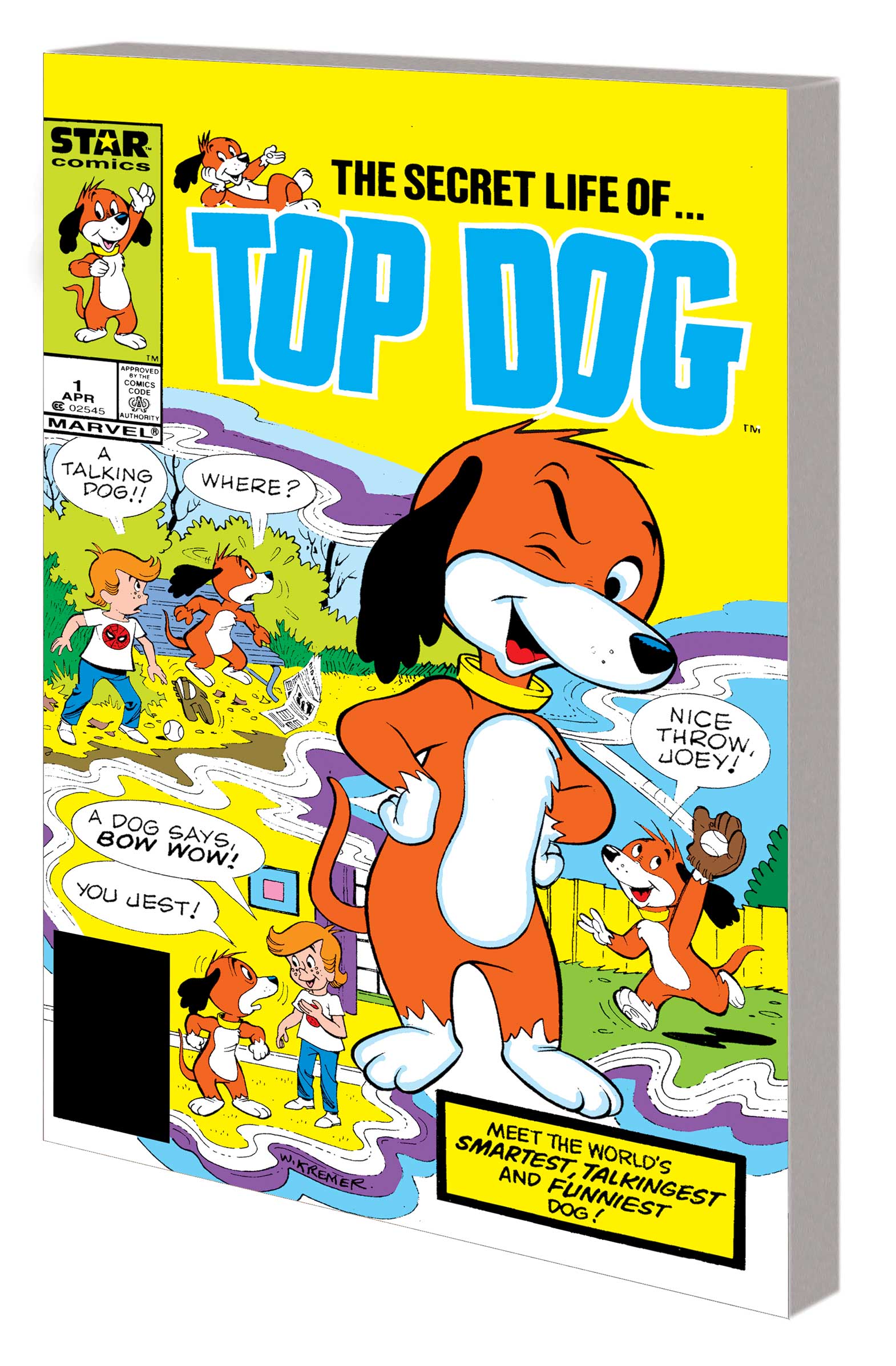 He’s the world’s smartest, funniest — and talking-est — dog! That’s right, Top Dog can talk — but don’t tell anyone! One of the biggest names in Marvel’s 1980s Star Comics imprint, Top Dog shared hair-raising and hilarious adventures with his best pal, Joey Jordan — and now you can relive them! When Mervin Megabucks — the richest, meanest kid in town — discovers what Top Dog is capable of, he sets out to dognap him! Our clever canine is accused of being a foreign spy and put behind bars — but what is the truth about Top Dog’s past, and what will that mean for his and Joey’s future? Featuring King Invisible, Frank ’n’ Stein, Royal Roy, Dirty Dog — and would you believe, the Amazing Spider-Man?! Collecting TOP DOG #1-14.