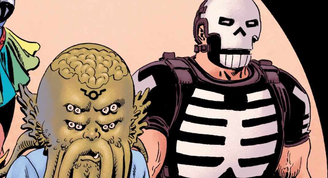 Ordway’s cover for the second collection of the series, which will include issues #5-8 of the miniseries, features, from left to right, The Horseless Rider, Ms. Moonbeam, Cthu-Lou, and Skulldigger. While Skulldigger has starred in his own six-issue miniseries previously, Black Hammer Visions will be the first time the other three characters have received a solo spotlight (though Cthu-Lou’s daughter, Cthu-Louise, has previously been the star of her own one-shot).