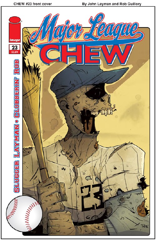 In addition, Chew #23 has been announced with the title “Big League Chew” — it’s out in October and includes a zombie-fied front cover.