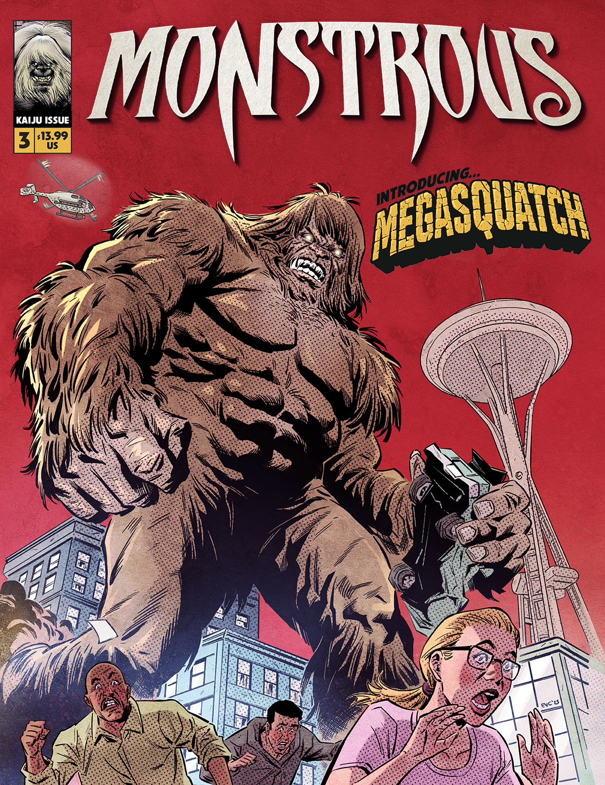 The first appearance of the Kaiju MegaSquatch, in a comic book story by James Aquilone and EV Cantada (Joe Ledger, Grimm Fairy Tales)