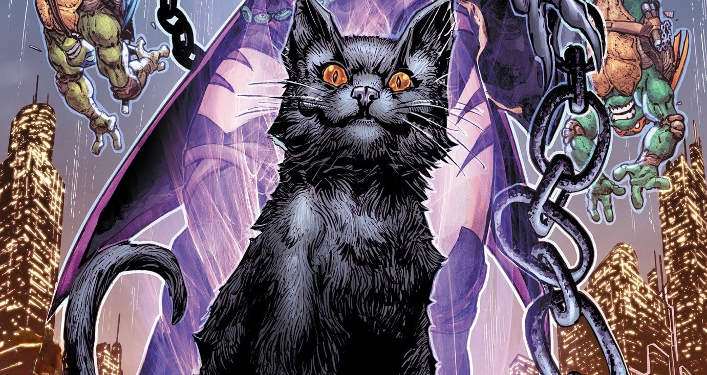 Throughout the issue, a strange black cat follows the Turtles. Towards the end of the story, in the aftermath of a fierce battle, the cat approaches Karai, progeny of The Shredder and current leader of the Foot Clan, revealing herself to be none other than the kunoichi and witch known as Shinigami!