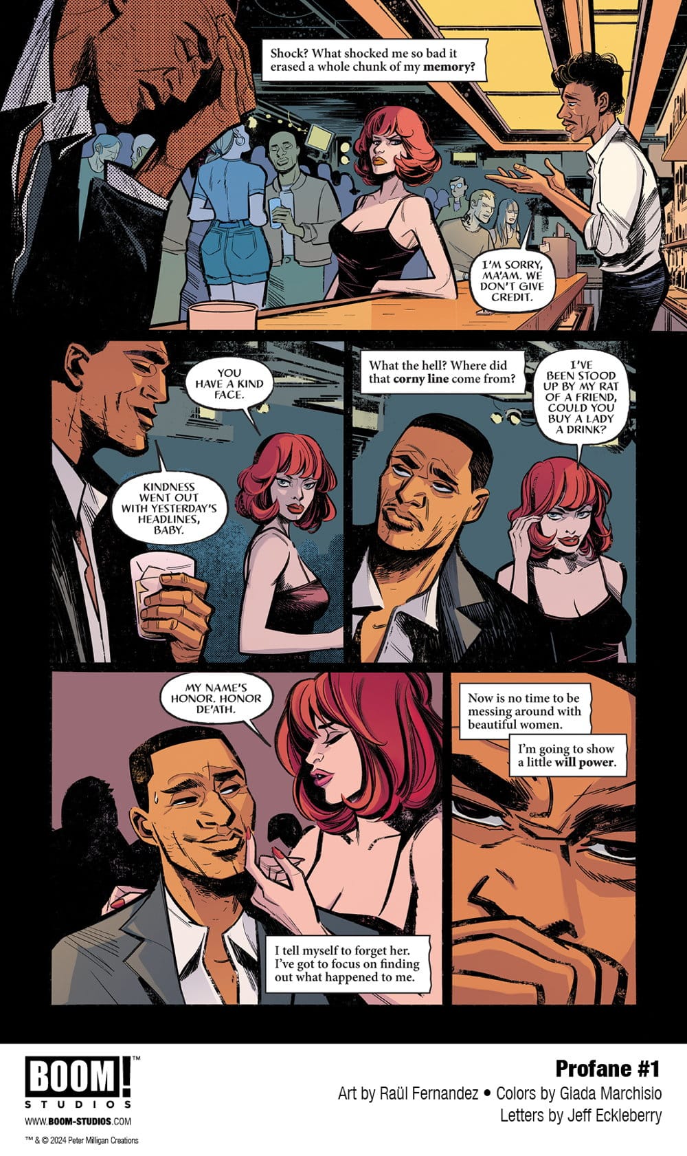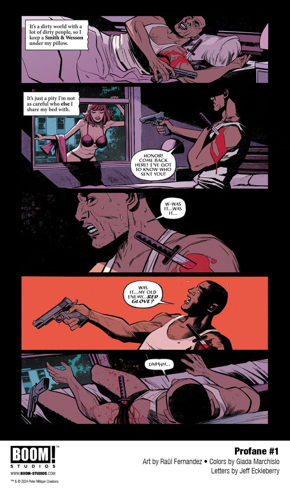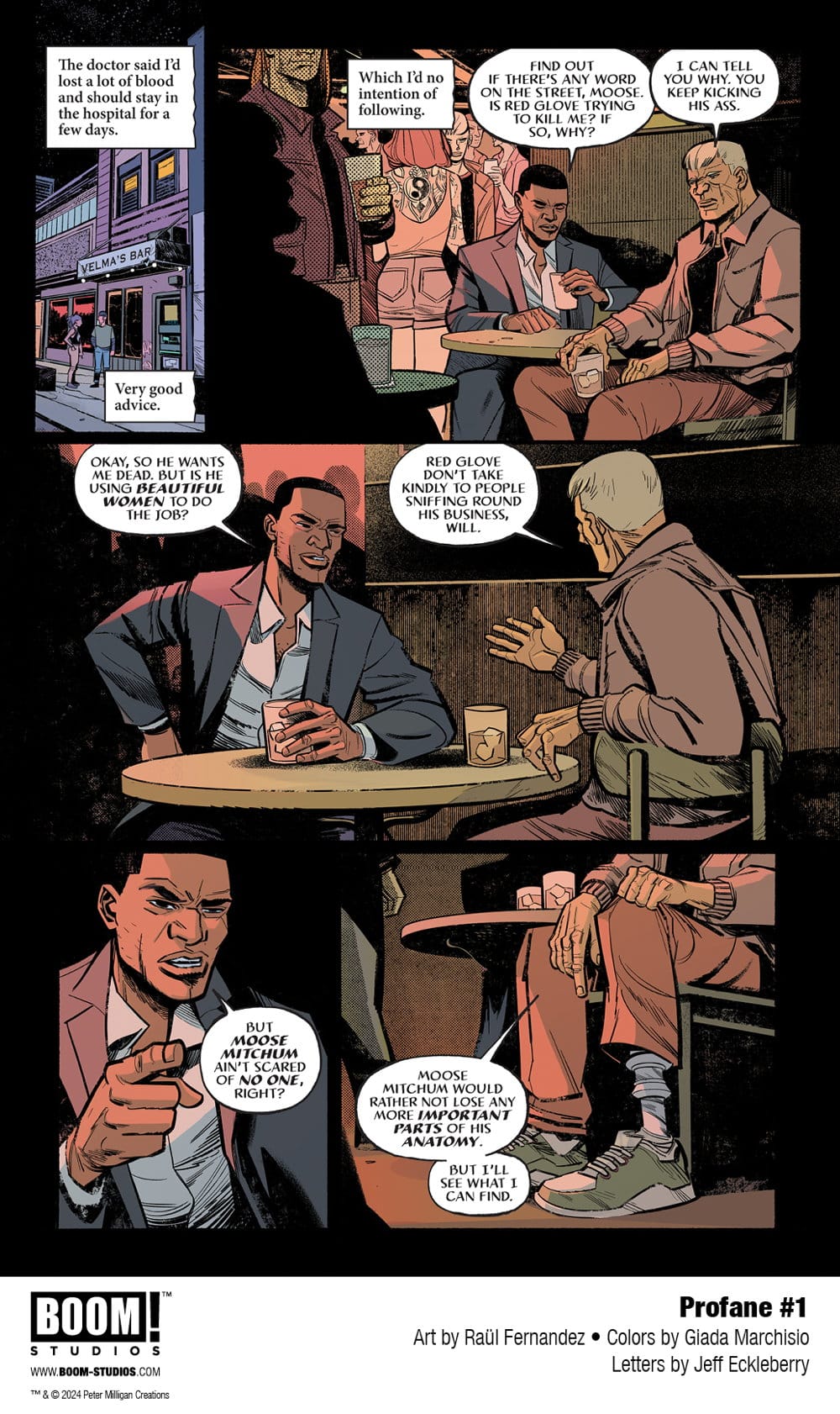 Peter Milligan (Hellblazer, Enigma) and Raül Fernandez (Detective Comics, Justice League Dark) get Profane with a new murder mystery series coming from Boom in June. They’re joined for the twisted tale by colorist Giada Marchisio, and letterer Jeff Eckleberry and here’s the first look at the series.