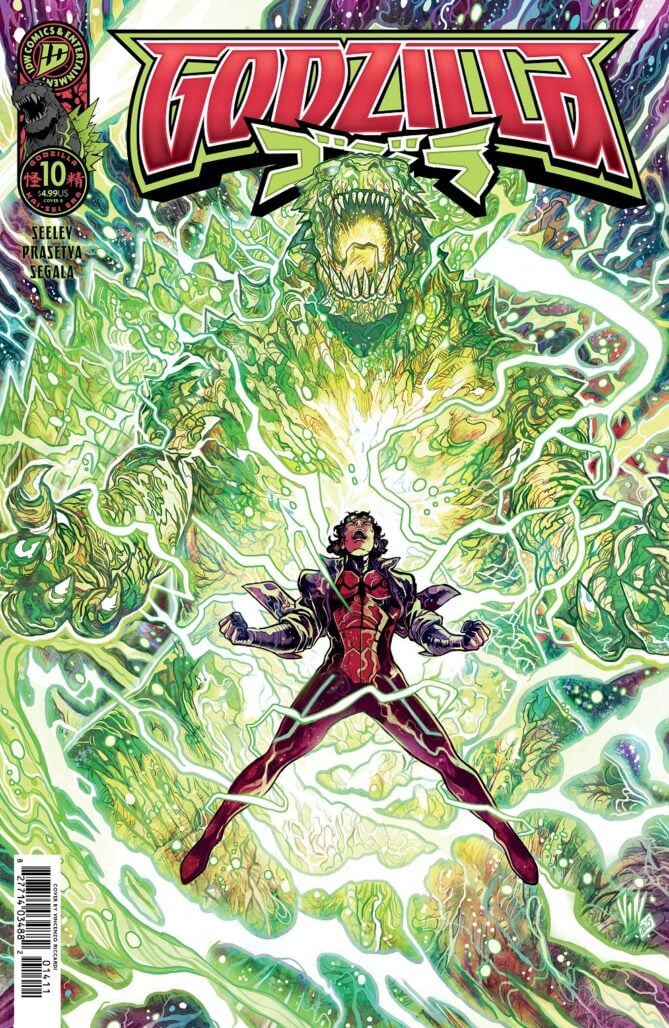 The first arc of IDW Publishing‘s recently relaunched Godzilla ongoing series as part of the Kai-Sei era shared universe concluded its first story arc earlier this month. As teased a few months ago, this storyline fulfilled its promise with the death of the King of Monsters. However, this being comics, there was more to it than meets than eye. Although Godzilla’s physical body may be destroyed, his life energy (better known as Kai-Sei) was absorbed by G-Mutant Jacen Braid, allowing the legendary kaiju to live on in a new host body taking on a form dubbed “Kai-Sei Energy Godzilla.”