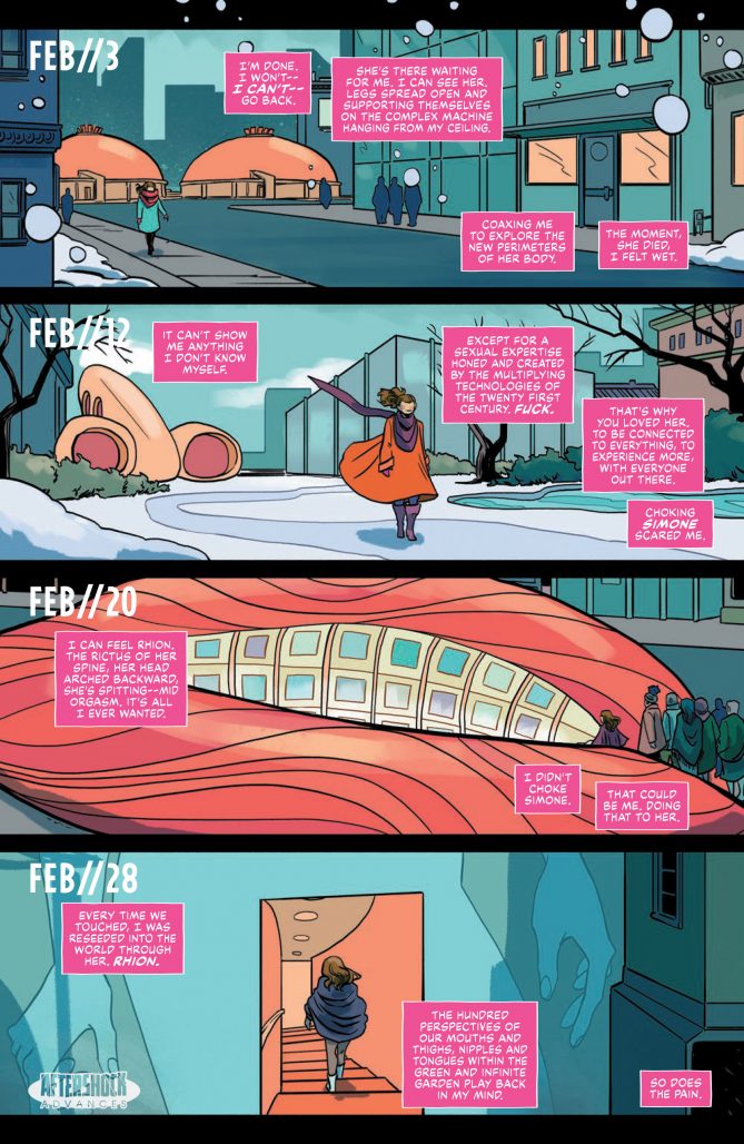 And today The Beat is honored to have an exclusive preview of said issue straight from AfterShock Comics. As you’ll see from the pages below, this story picks up right where the third issue left off, exploring the horror of the reveal that ended the previous installment on a cliffhanger.