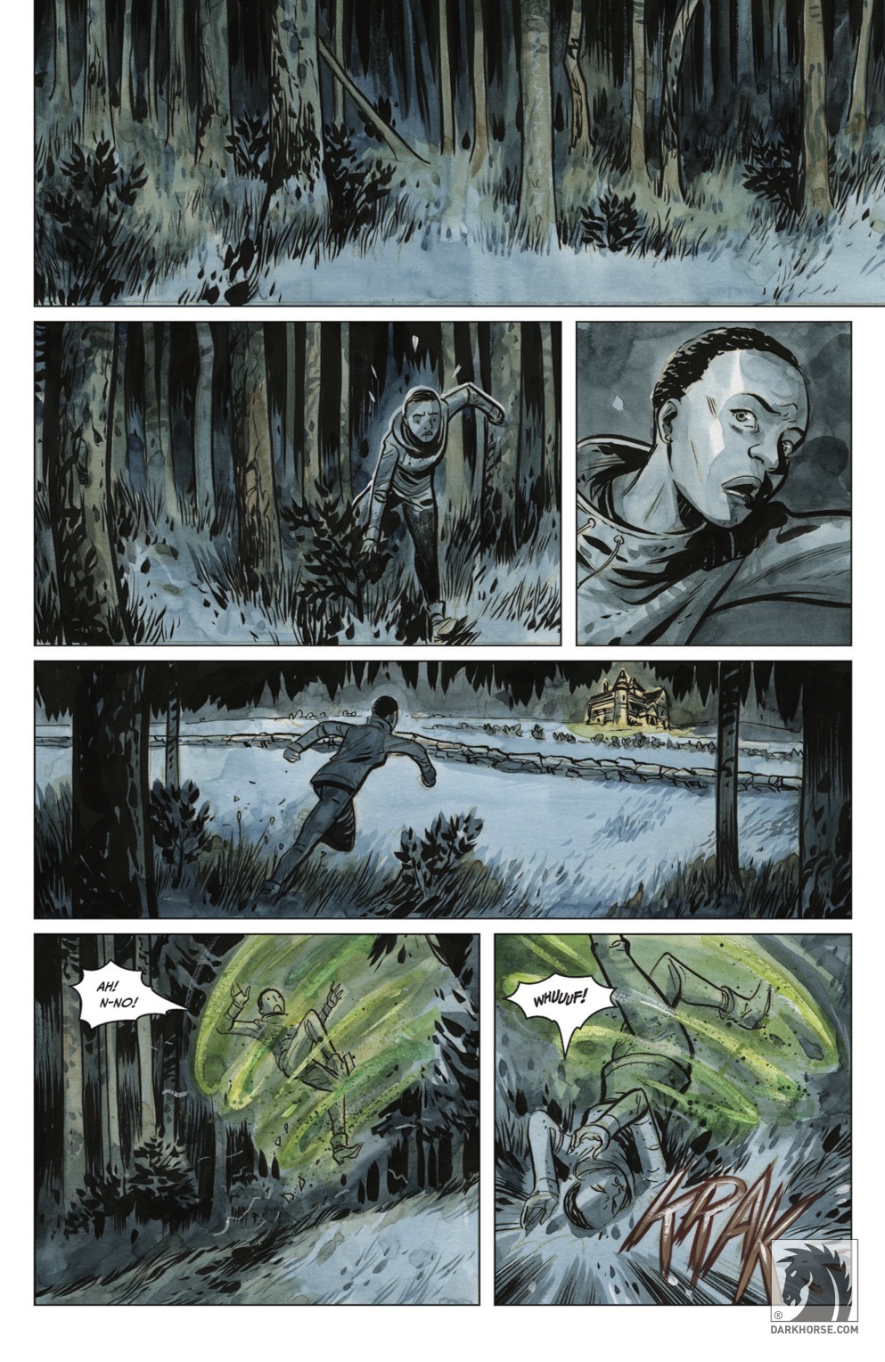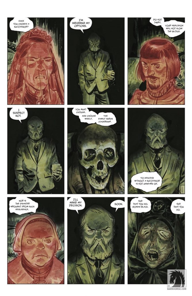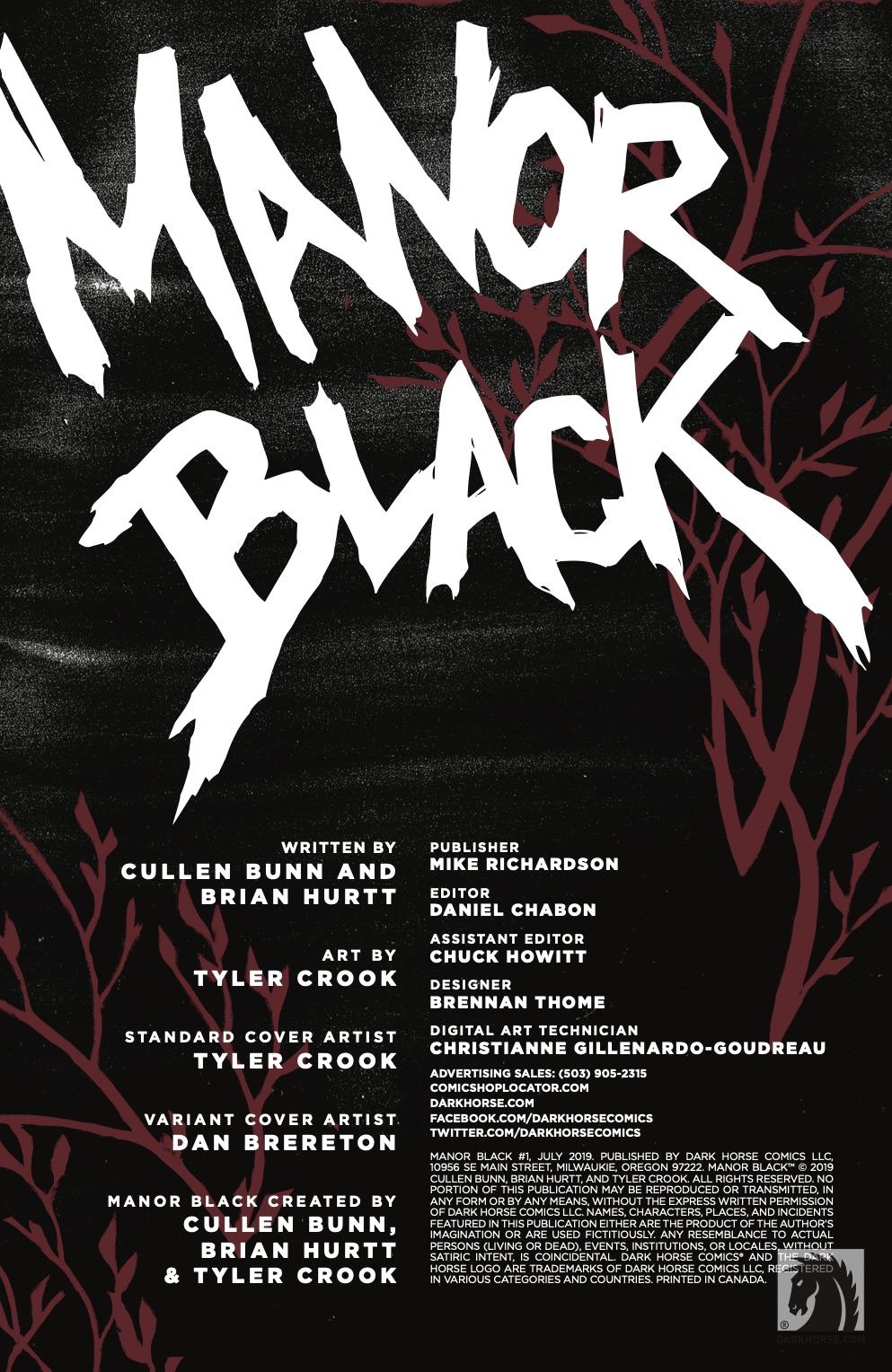 Dark Horse Comics is continuing their backlist promotion program with another free comic for readers to sample. This time, The Beat is proud to present a look at the full first issue to Cullen Bunn, Brian Hurtt, and Tyler Crook‘s Manor Black. The four-issue miniseries, co-written by Bunn & Hurtt and illustrated by Crook, follows a family of sorcerers in a power struggle for control of the titular Manor Black, and the outsider the family’s patriarch adopts to defend the family from dark forces at work against them.