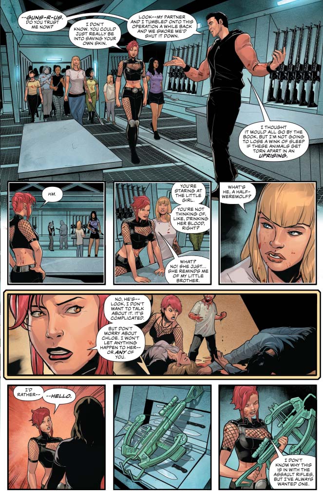 In Chastity #3, the bad girl semi-vampire slayer continues her attempts at breaking free from a human trafficking ring she inadvertently ended up in. Her usual resources—her vampire side and her biting sarcasm—are not working for her, and the number of people she can trust in the situation are few and far between. Maybe a little creativity is in order this time for the punk protagonist’s escape.