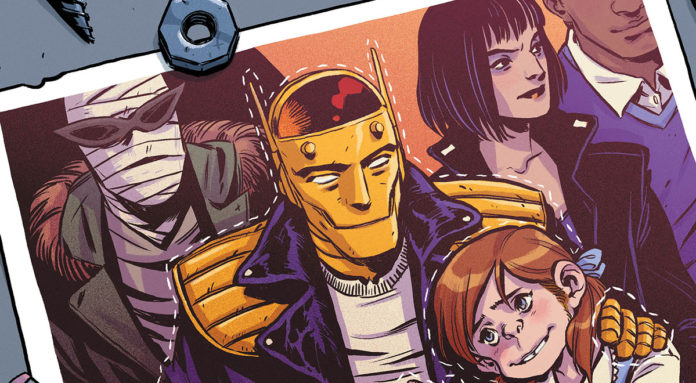As Doom Patrol: Weight of the Worlds #5 begins, we meet Clark, a Doom Patrol mega-fan. He’s cantankerous and superstitious, believing in the ability to divine the future using Doom Patrol comics. One thing that he doesn’t expect, however, is to be pulled into an issue of the Doom Patrol by Dorothy Spinner herself! What happens next? Well…check out the Beat’s exclusive preview of this issue, out this Wednesday, after the jump, and then head to your local comics shop to find out!