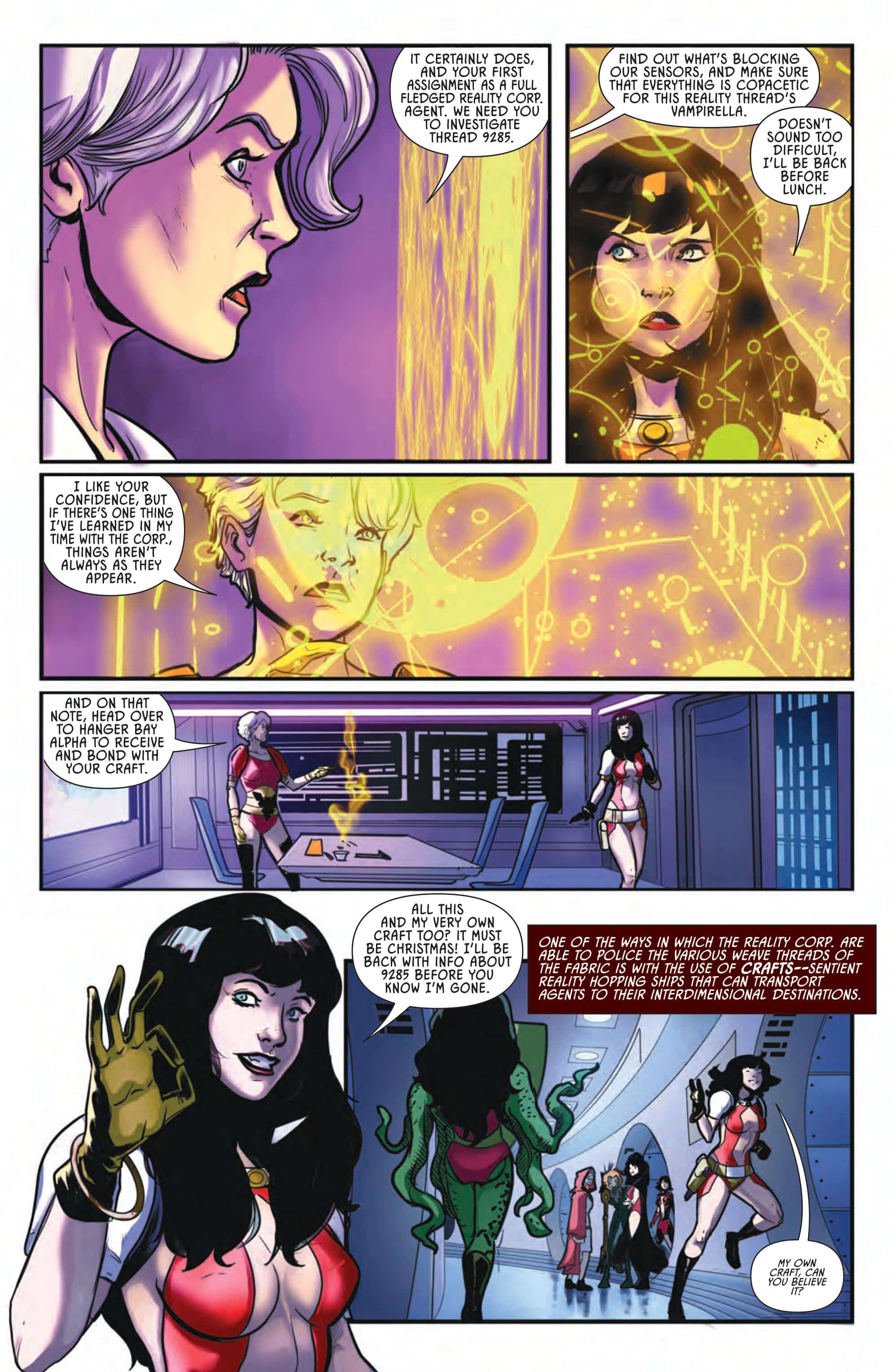 Vampirella’s daughter Lilith, now working for the Reality Corporation, has received her first assignment: investigate an anomaly in one of the many threads of the Fabric where the Vampirella of that world has gone eerily silent. Upon reaching this troubled reality, Lilith discovers a world overrun by the spawn of Chaos, and a Vampirella beaten and broken by the forces she has sworn to combat. Now, it’s up to Lilith to save this world from a monstrous evil and to restore Vampirella to the warrior of Order she once had been!