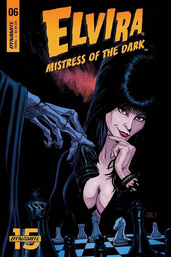 Elvira is on the fast track to the world of the damned and plans on having a few words with management when she gets there. Elvira: Mistress of the Dark #6 features more thrills, chills, classic puns, and of course cleavage for fans of the iconic First Lady of the Macabre. Brought to you by writer David Avallone, artist Dave Acosta, and letterer Taylor Esposito, the issue includes covers from artists Joseph Michael Linsner, Craig Cermak, and John Royale as well as a photo cover of Elvira in one of her classic poses.