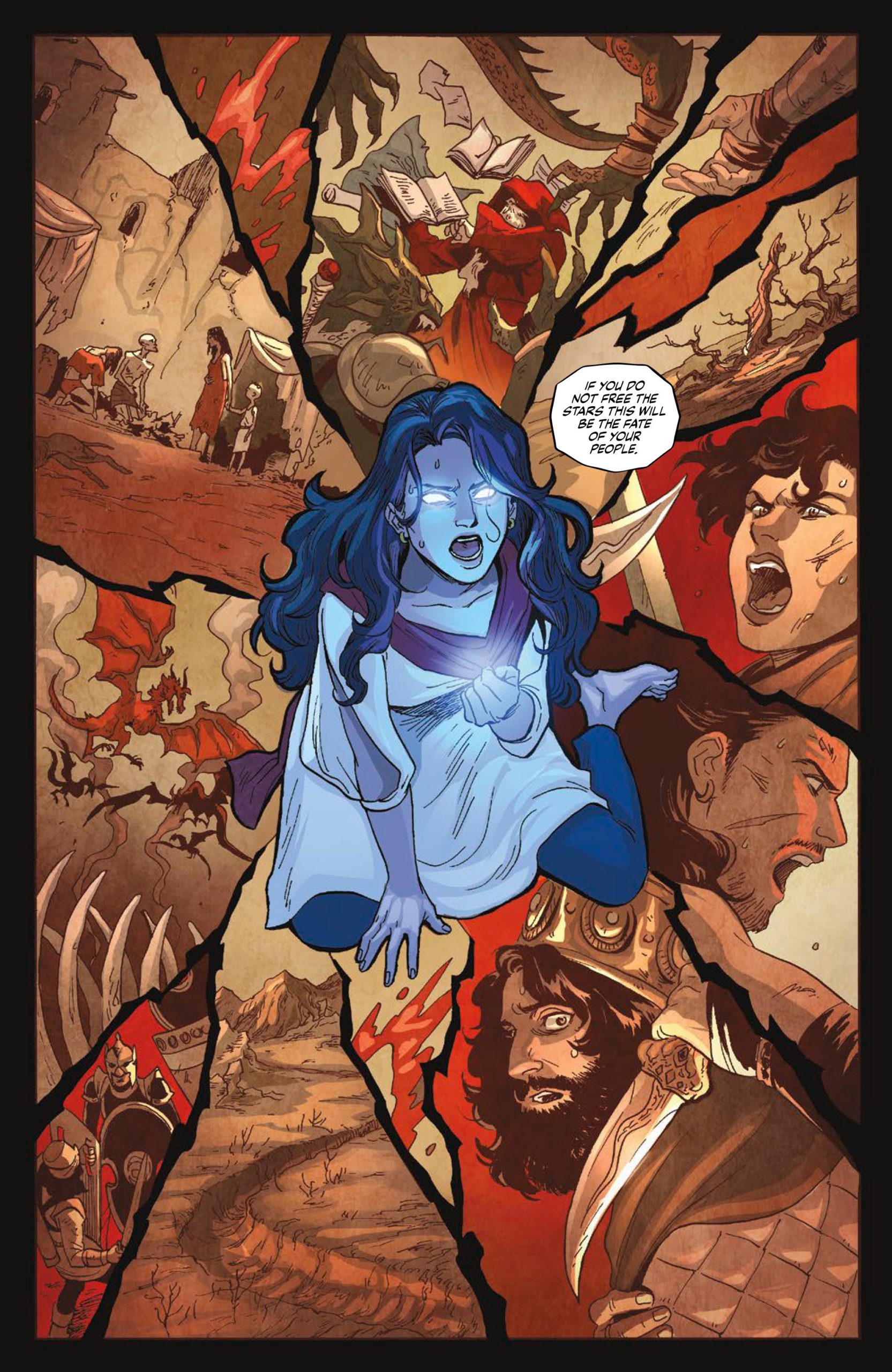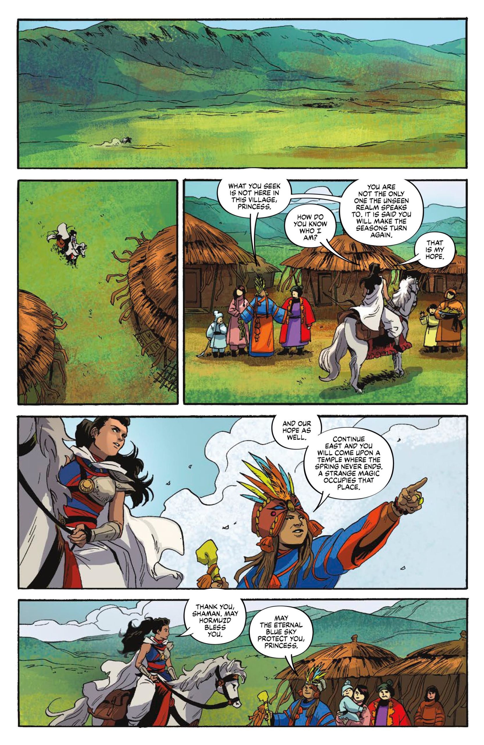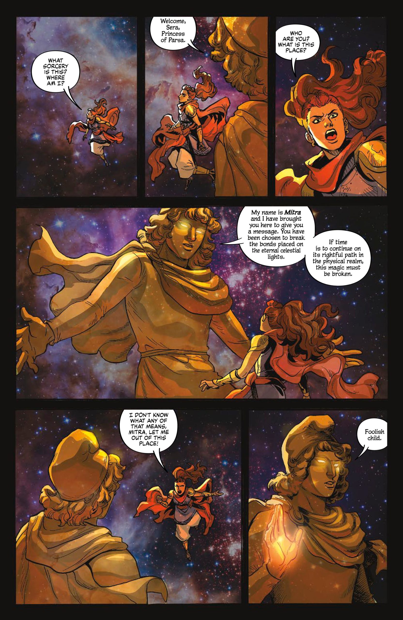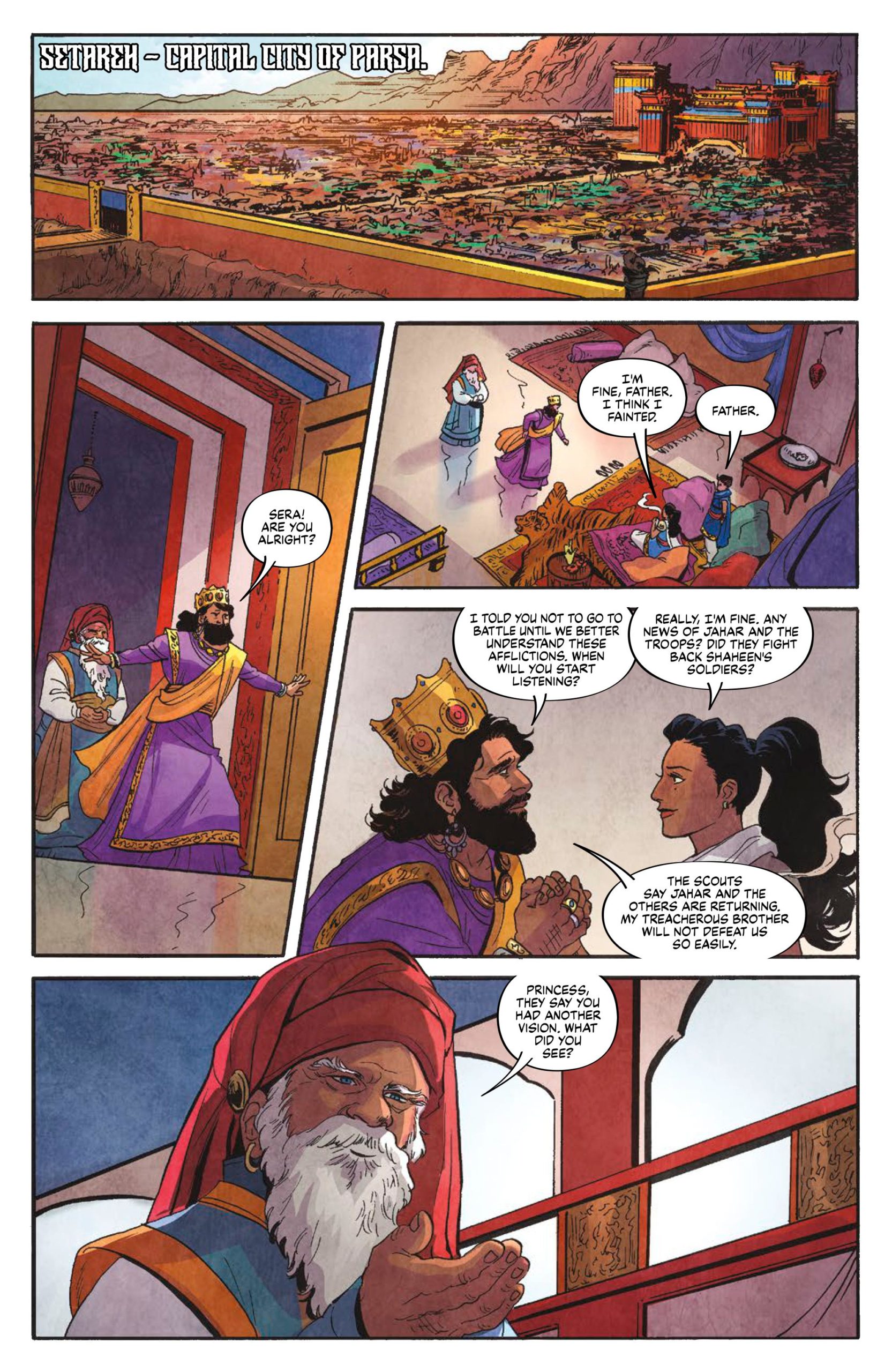Civil war rages in the Empire of Parsa, and famine has struck. As the seasons refuse to turn, Princess Sera receives a vision from the deity Mitra telling her to find the Royal Stars and restore them to the heavens. Despite her kingdom and her troops’ need of her command, Sera embarks on a quest to find the fallen stars-now trapped on earth-and save her people from dearth and death. Author Jon Tsuei takes readers on an epic fantasy quest through the Persian landscape, beautifully drawn by Audrey Mock and brought to life through Raúl Angulo’s colors, with lettering by Jim Campbell.