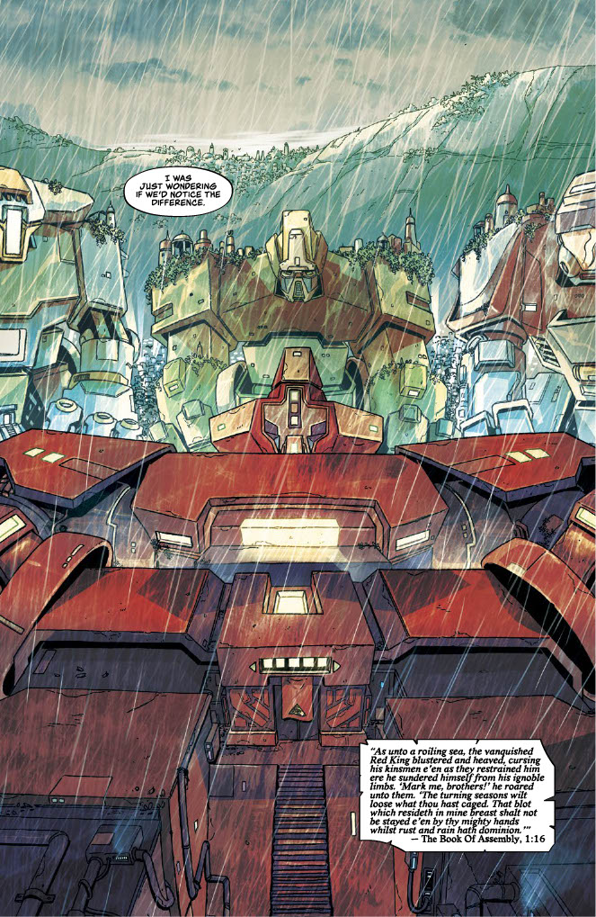 Evan should never have gone back to the dead Giga, but he did, and now he’s a murder suspect. Meanwhile, Legs is deteriorating at an alarming rate. The Red King–the oldest and largest of the Giga–is revealed, prophesied to unleash hell on a world whose sins the great mech took into itself centuries earlier. As an old friend of Evan’s returns, he devises a desperate plan to locate the dead Giga’s real killers.