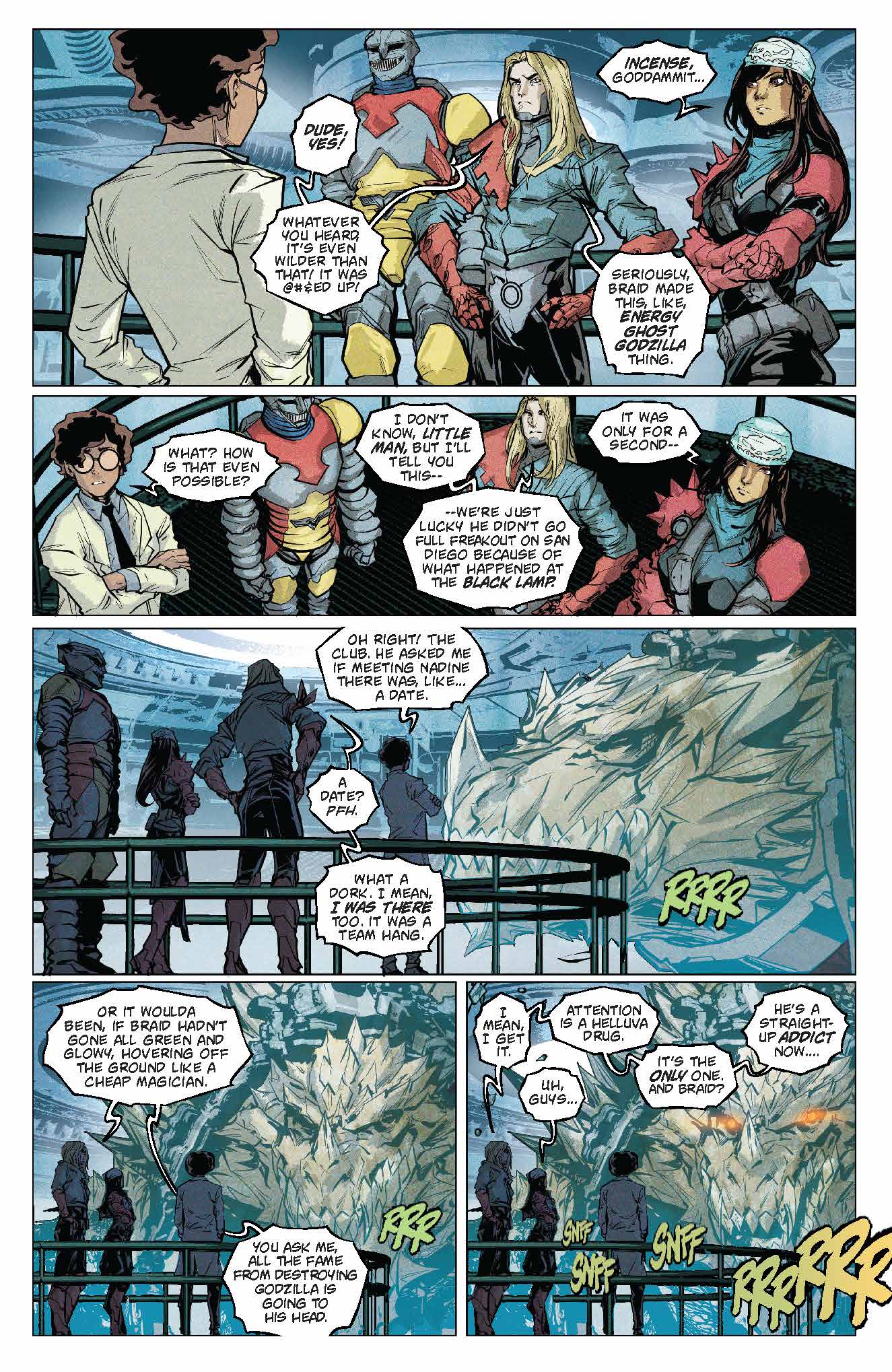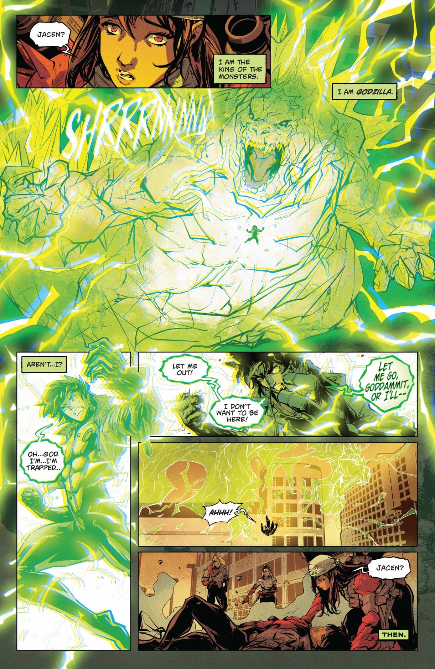 Godzilla has returned! No physical body. All kai-sei energy…all rage…all currently stuck inside of Jacen (or possibly, Jacen is stuck inside of it?). As Jacen and G-Force attempt to stop this more powerful and more mysterious version of Godzilla, a strange girl named May uses the opportunity to start a kaiju stampede.