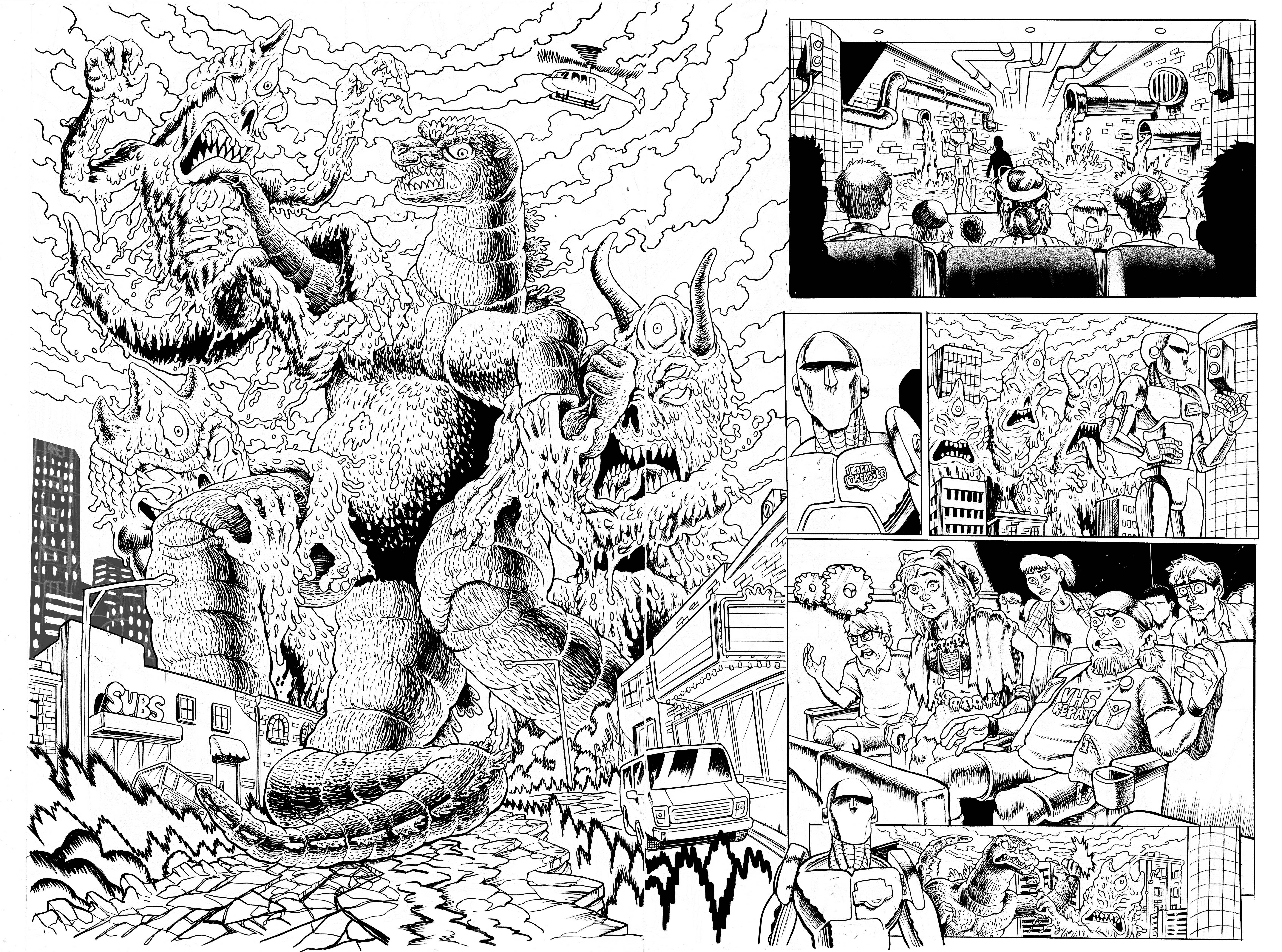 The Beat is proud to exclusively reveal preview pages of Godzilla vs. America: Kansas City. Available next month on October 29, the issue will feature stories by various Kansas City–based comics creators including Freddie E. Williams II, Baldemar Rivas, Jake Smith, Buster Moody, and more. As readers can see from the preview art below, the Kauffman Center for the Performing Arts may not fare too well. Pre-order deadline is this Monday.