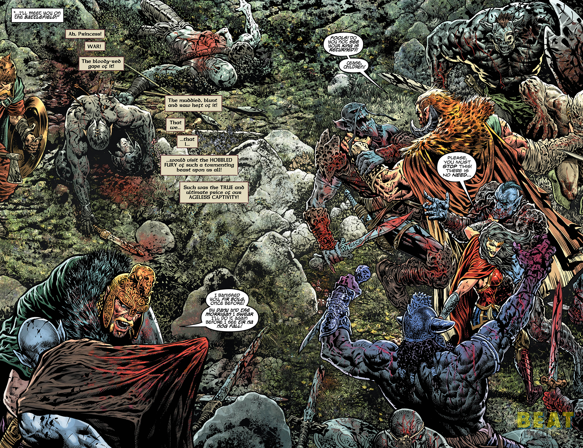 Check out the Beat’s exclusive preview of this Wednesday’s The Brave and the Bold #6, the powerful conclusion to this series that sees Batman and Wonder Woman caught in the middle of a fight between siblings with the fate of the mythic Tir Na Nóg hanging in the balance.