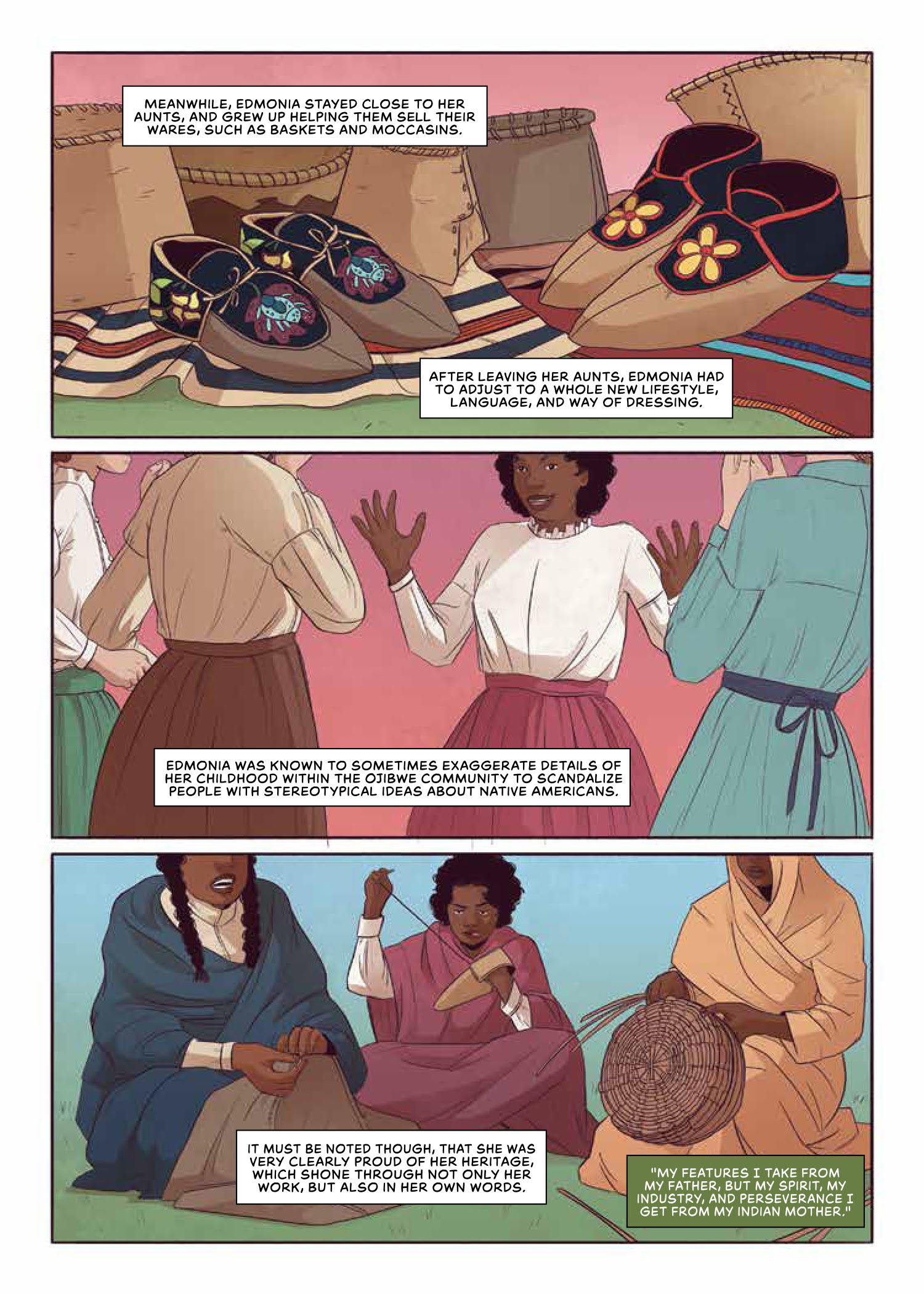 Check out the exclusive preview of the first seven pages of Seen: True Stories of Marginalized Trailblazers – Edmonia Lewis below. The graphic novel biography from BOOM! Studios will be available for sale in comics shops on Wednesday, September 23rd, 2020, with a bookstore release date of the following Tuesday, September 29th.