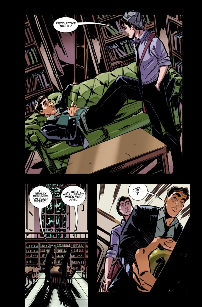 Thomas Pitilli: “With the backdrop of Jughead’s chapter set mainly in the Stonewall library, I really got into the setting and tried to let that environment create the proper mood and tone for that piece of the story. I think it was Todd McFarlane who once said, ‘When in doubt, black it out,’ and I definitely employed that advice to add to the mystery and moodiness of some of these pages. Also, not to give too much away, but there’s a flashback sequence in this chapter, as well, and drawing the aesthetic of that particular period of time was a lot of fun.”
