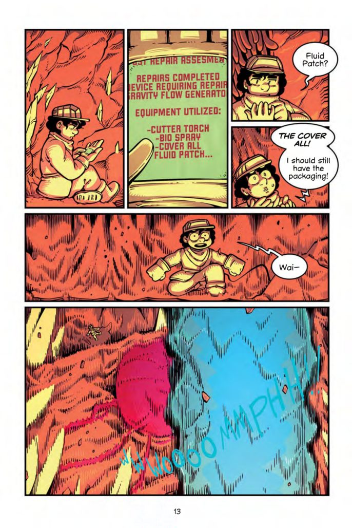 “As quest stories go, the world building in this one is impressive. Both Topside and the Core feel fully realized, with wordless panels full of imaginative creatures, a diverse cast of expressive characters, and strong, evocative colors doing much of the storytelling. A dystopian sf graphic novel perfect for readers new to the genre.”―Booklist