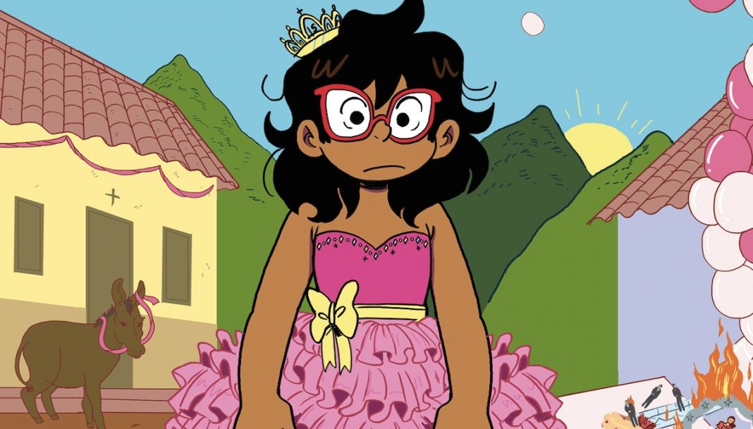 In the graphic novel Miss Quinces / Srta. Quinces by Kat Fajardo, Sue will go to any lengths to avoid celebrating her quinceañera… but that gets more difficult when her mother announces during a family trip to Honduras that she’ll be having a surprise celebration! What will Sue do?