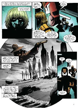 When a lone rider arrives at the wall protecting the city from The Cursed Earth, he brings more than ill-tidings. The meta-normal cowboy killer Ichabod Azrael is on a mission – and it’s by now means certain that he, Judge Dredd, Judge Anderson, or even the world will survive!