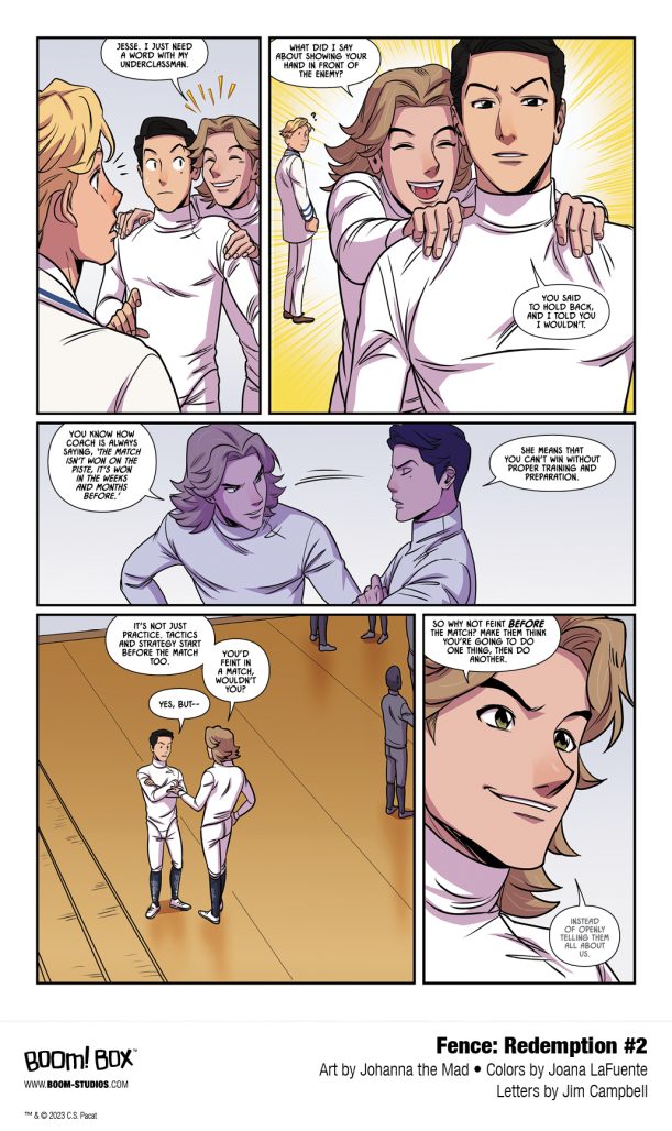 Next month, BOOM! Studios will release Fence: Redemption #2. The latest installment in the four-issue miniseries from BOOM!’s Boom!Box imprint comes from the creative team of writer C.S. Pacat, artist Johanna the Mad, colorist Joana Lafuente, and letterer Jim Campbell. Today, ahead of its final order cut-off date, The Beat is pleased to present an early preview of the issue.