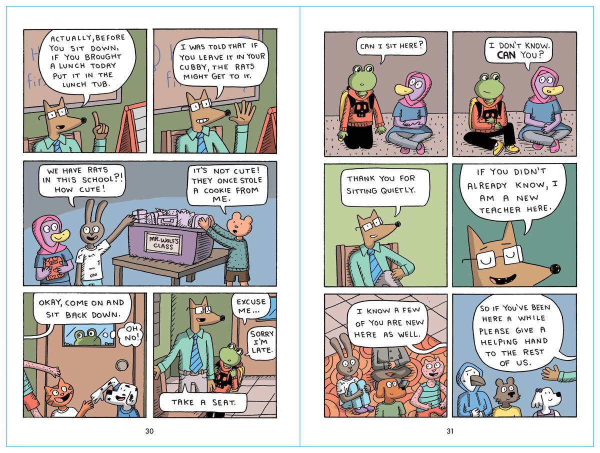 Scholastic has given the Beat the EXCLUSIVE first look at the cover and a few interior pages. Mr. Wolfe’s Class comes out in mis 2018 but it looks to be another winning tale from Steinke and Scholastic Graphix.