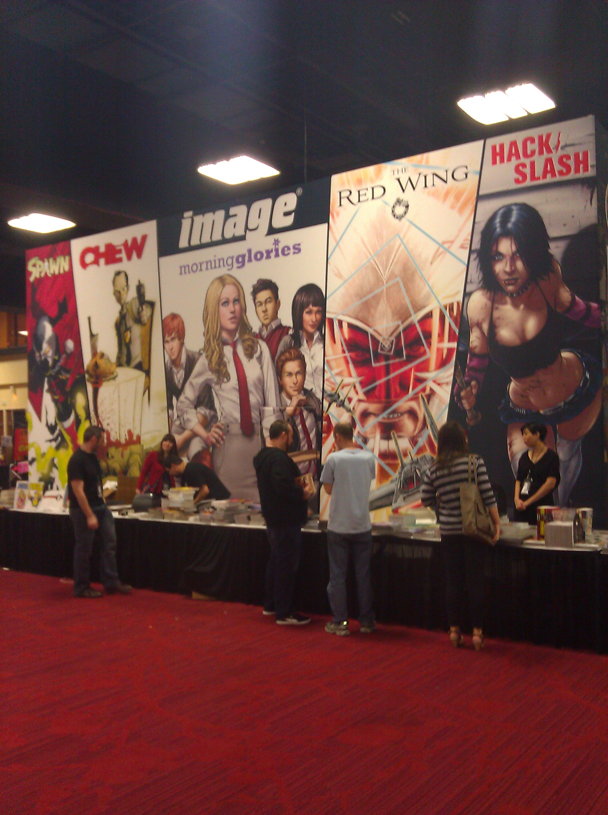 Image Expo is a go. Looks like a relatively quiet Friday at a regional con, so far. Which is to say it’s going to be better access for the fans. When I arrived about 45 minutes before opening there were maybe 50 people already in line waiting to get in. With the gates open, I’m seeing a steady trickle of people arriving. Not preview night at San Diego, by any stretch of the imagination, but the Chew booth got bull rushed by at 15-20 people as soon as the doors open. A couple pictures from before the opening bell: