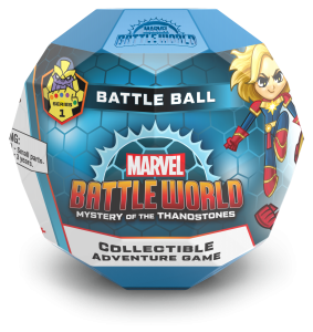 The new adventure game, based on the Marvel Universe, combines micro collectible characters, cards and gaming, allowing kids to battle against Thanos in gameplay unleashed through a Battle Ball. Each Battle Ball contains a surprise of two Marvel collectable characters, Hero Cards, Battle Cards and pair of dice, all for a highly accessible price point. Players can collect Marvel micro heroes ranging from icons like Iron Man, Captain Marvel and Groot, as well as characters like Valkyrie Gamora and Throg.