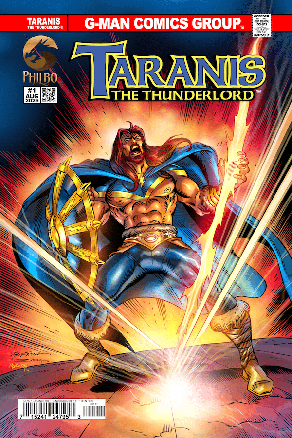 In case you haven’t heard of G-Man Comics it’s a small outfit featuring superhero-ish tales founded by Rik Offenberger, Jim Burrows & Eric N. Bennett, featuring their own creations. As part of their announcement, their publishing schedule will rotate its lineup of ongoing titles in four-issue story arcs. These titles include the amusingly named Simon N. Kirby & The G-Men, Sgt. Flag, Taranis the Thunderlord, and Lynx.