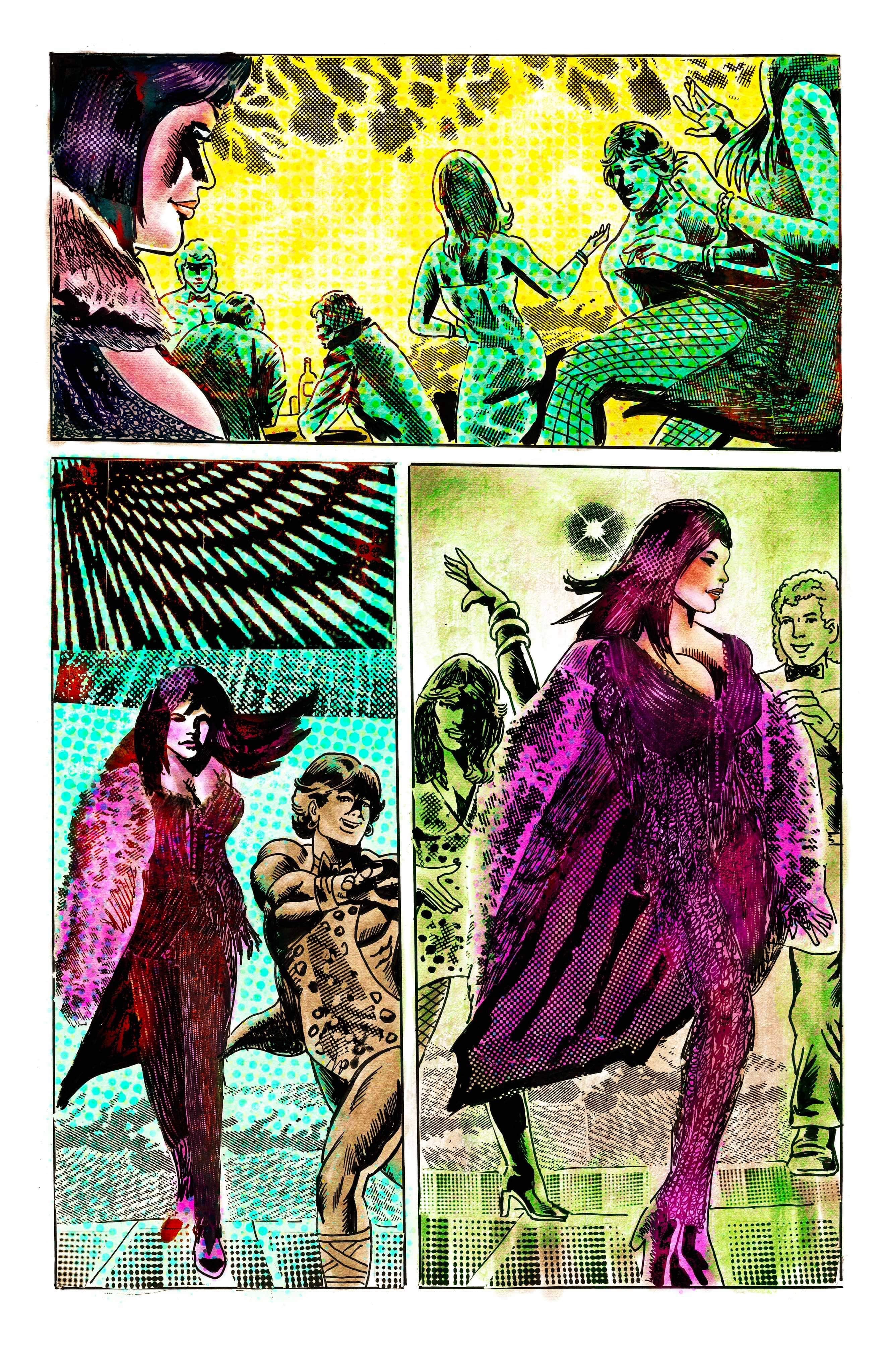 “It’s great to be teaming up with Rocko Jerome, and always fun to work from his stories,” adds Landgraf. “I kinda bounce off his ideas, and he lets me fly! And I absolutely love the psychedelic coloring by Meesimo – it adds to my line work in a really unique way.”
