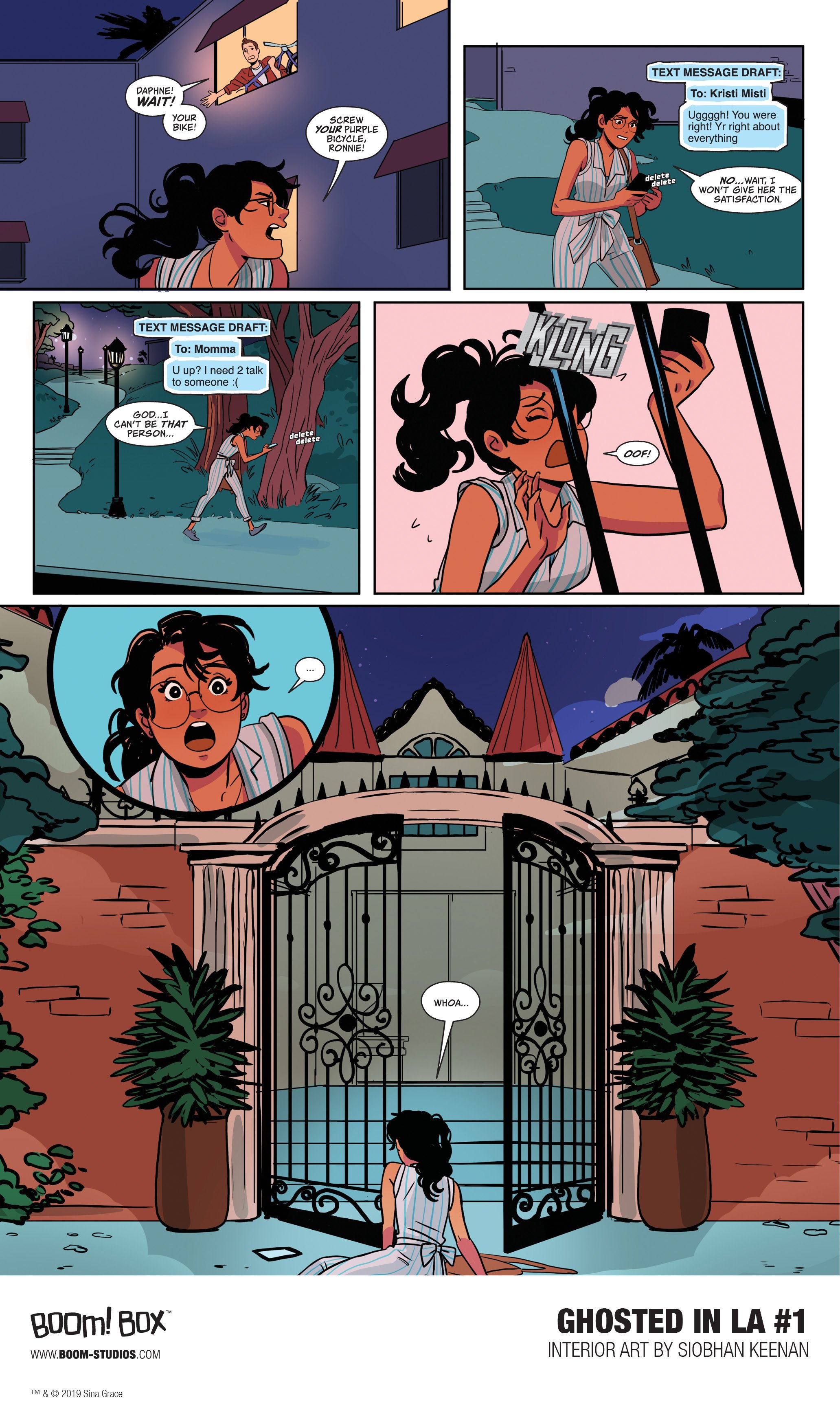 Check out three pages of the first issue below, as well as covers by Keenan, Anka and Grace. Ghosted In LA #1 is available in comic shops and online July 10. For more, see boom-studios.com.