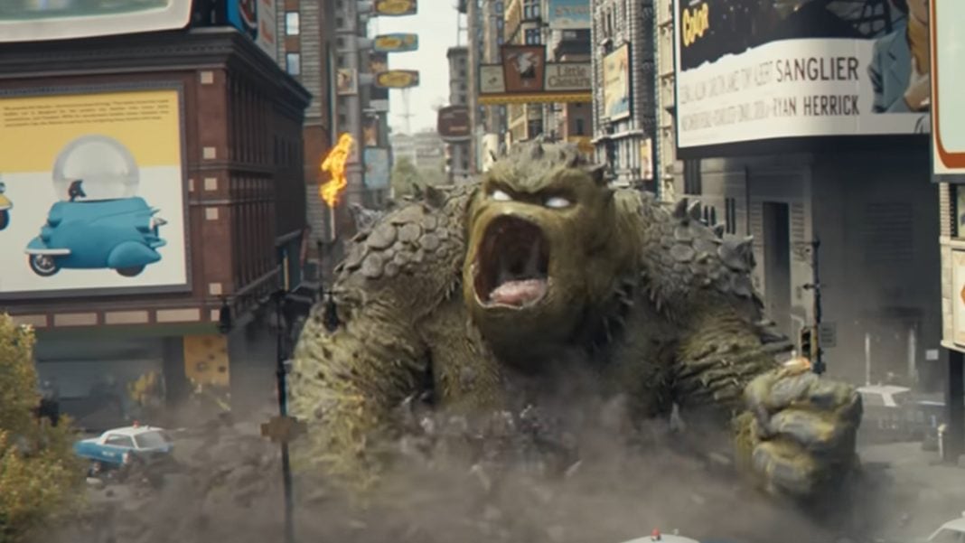 The trailer, directed by First Steps production designer Kasra Farahani, features a clever recreation of the 1961 cover for Fantastic Four #1 illustrated by the King of Comics himself, Jack Kirby. Those familiar with the image know that not only does it feature the titular team on their first encounter with the fantastical ever, but also a giant monster called Giganto that’s become iconic due to the monumentality of it in comics history.