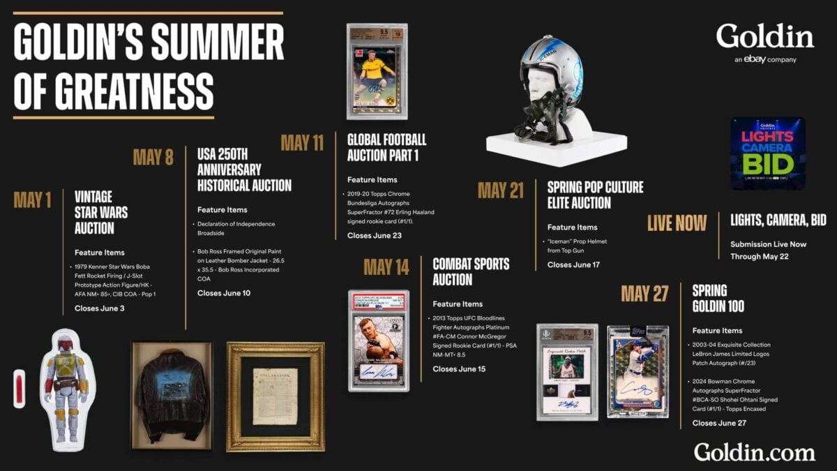 Goldin Co. is launching Summer of Greatness, a wide-ranging auction series that will run through May and June. The auctions will showcase an impressive selection of collectibles from sports, history, and entertainment.