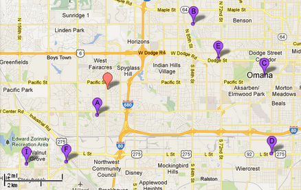 We were then on the road again at 11:00 AM, headed towards Orcs4Hire Omaha’s Table Top and Miniature Gaming Store (marker F). It didn’t open until Noon, so I just peeked in the windows. It is two storefronts: one for gaming tables, the other for retailing. Nothing amazing, just a serviceable space.