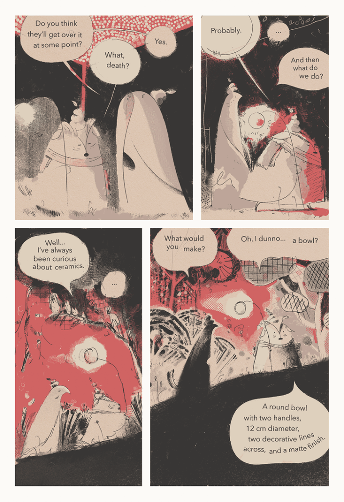 What happens when we die? That question and the concept of life after death provides almost limitless potential for storytellers. All The Living, the latest graphic novel by Roman Muradov, is no exception. Muradov creates an land of the dead for late stage capitalism. One that offers nothing and only where each possibility just gets worse. The book’s bleak outlook offers little hope for anyone reading it.
