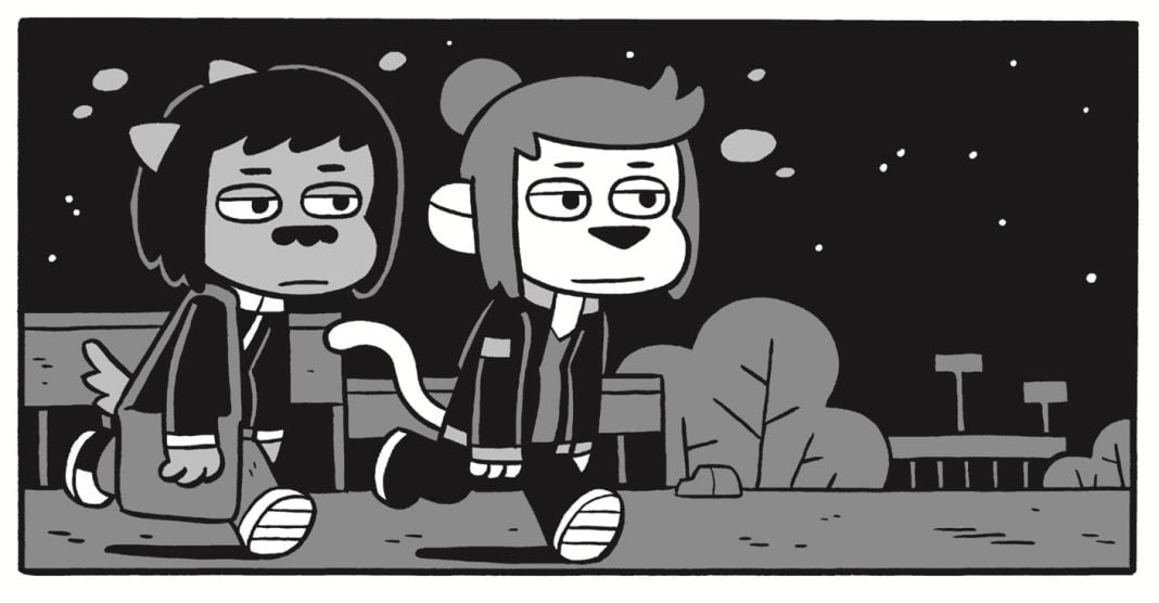 For nearly a decade now Jon Allen has been slowly but surely building out his own little universe, centered on the fictitious town of Piney Bluff, Ohio: A strange corner of the post-industrial Rust Belt where adorable anthropomorphic animals drink, do drugs, fall in and out of lust and love, and generally get into trouble. Across the increasingly ambitious graphic novels Ohio is For Sale, The Lonesome Era, and Julian in Purgatory this odd yet instantly-recognizable environment has taken on a very clear form. Allen’s crisp black-white-and-gray drawings linger on the details of American life circa the turn of the millennium: Abandoned factories and depressing chain restaurants dominate the landscape, while the characters’ homes are strewn with the detritus of mass-produced consumer goods that promise, in vain, to dull the pain of a quickly-vanishing working-class life that seems to be getting a little bit worse with every passing year.