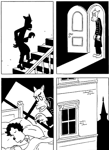 It might sound odd putting him in this framing considering his work is frequently discussed in the pages of The Comics Journal and other literary fare. And yet, Jason has always remained a fixture of genre. The most obvious of these is perhaps I Killed Adolf Hitler, a time travel farce about an assassin who fails to kill Adolf Hitler. We follow him in the wake of the decades he’s spent in the past while the people around him come to terms with how time has remained unchanged even as he’s come to terms with its passing. Equally, The Left Bank Gang is a crime caper in which a bunch of literary authors from the early 20th century rob a bank. And, of course, Werewolves of Montpellier is about Werewolves of Montpellier.