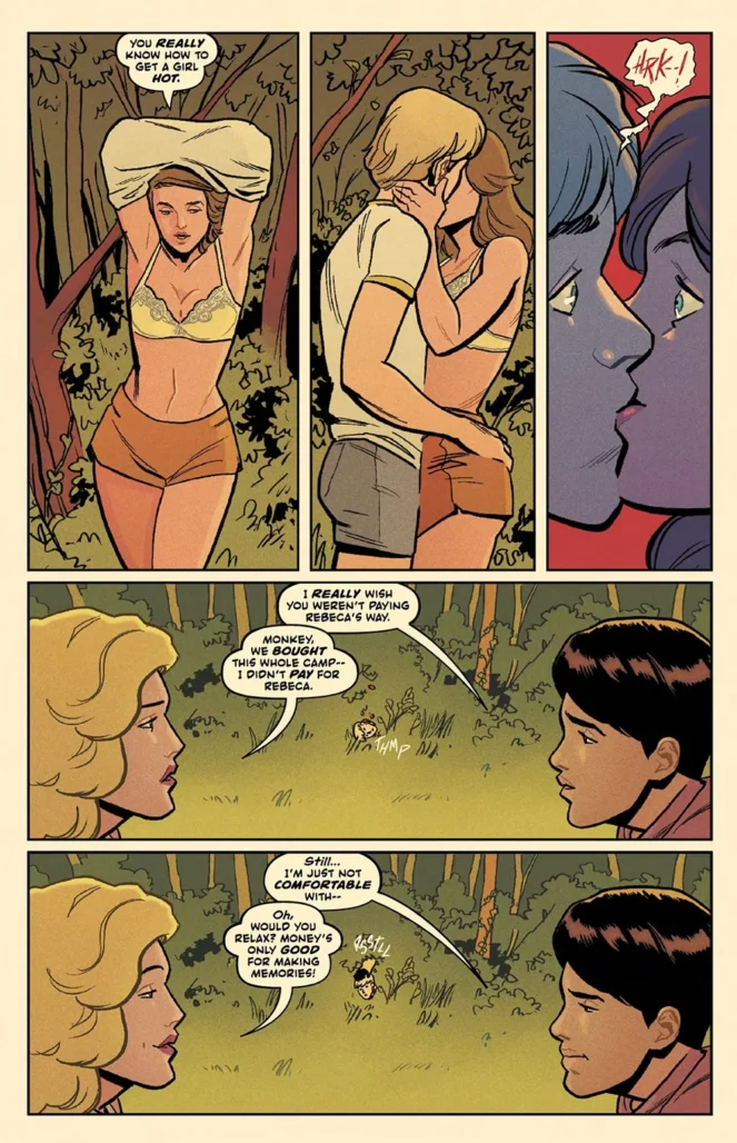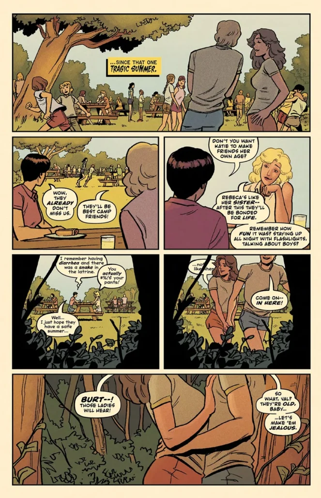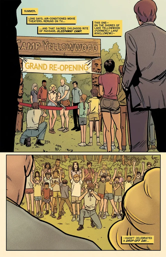 And Guidry’s art is pristine, colored to perfection here by the great Chris O’Halloran, with Hassan Otsmane-Elhaou’s always-excellent lettering lending support. The art in this book does have a cinematic feel to it, bouncing from sunny, not-quite-sepia-toned daylight camp scenes to rain-soaked horror in the books climax, all of which O’Halloran separates well with the perfect color choices.