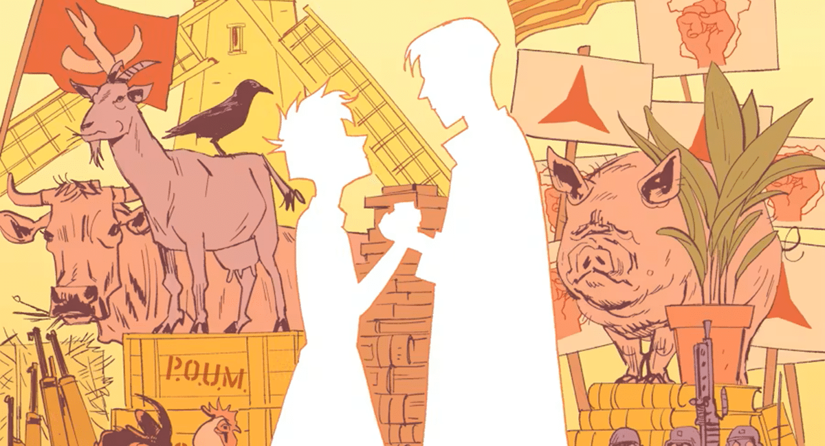 Mrs. Orwell, as the title makes clear, is actually a book about George Orwell’s wife, the poet Eileen Blair. And it uses many of the events from their real lives together, including their time spent in Spain, involved in the Spanish Civil War. As good historical fiction does, it uses these events as a framework, subsequently filling in characterization, motivations, and, most importantly for our purposes here, excellent graphic novel scenes.