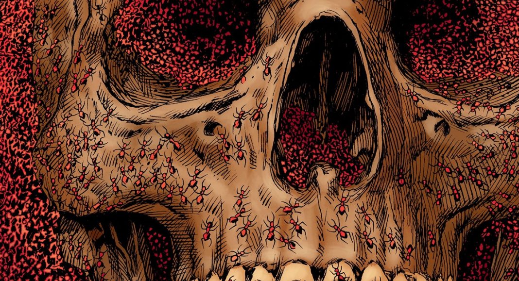 Characters get chewed down to the bone and there’s not one scene where it doesn’t look grisly. In some cases the feeding is drawn out through several panels so we can appreciate the frenzy of the attacks. The details on the insect swarm evoke images of biblical plagues and warzones, and you want even more of it because of how well it’s put together composition-wise. It’s a treat, and a great showcase of Kowalski’s abilities.