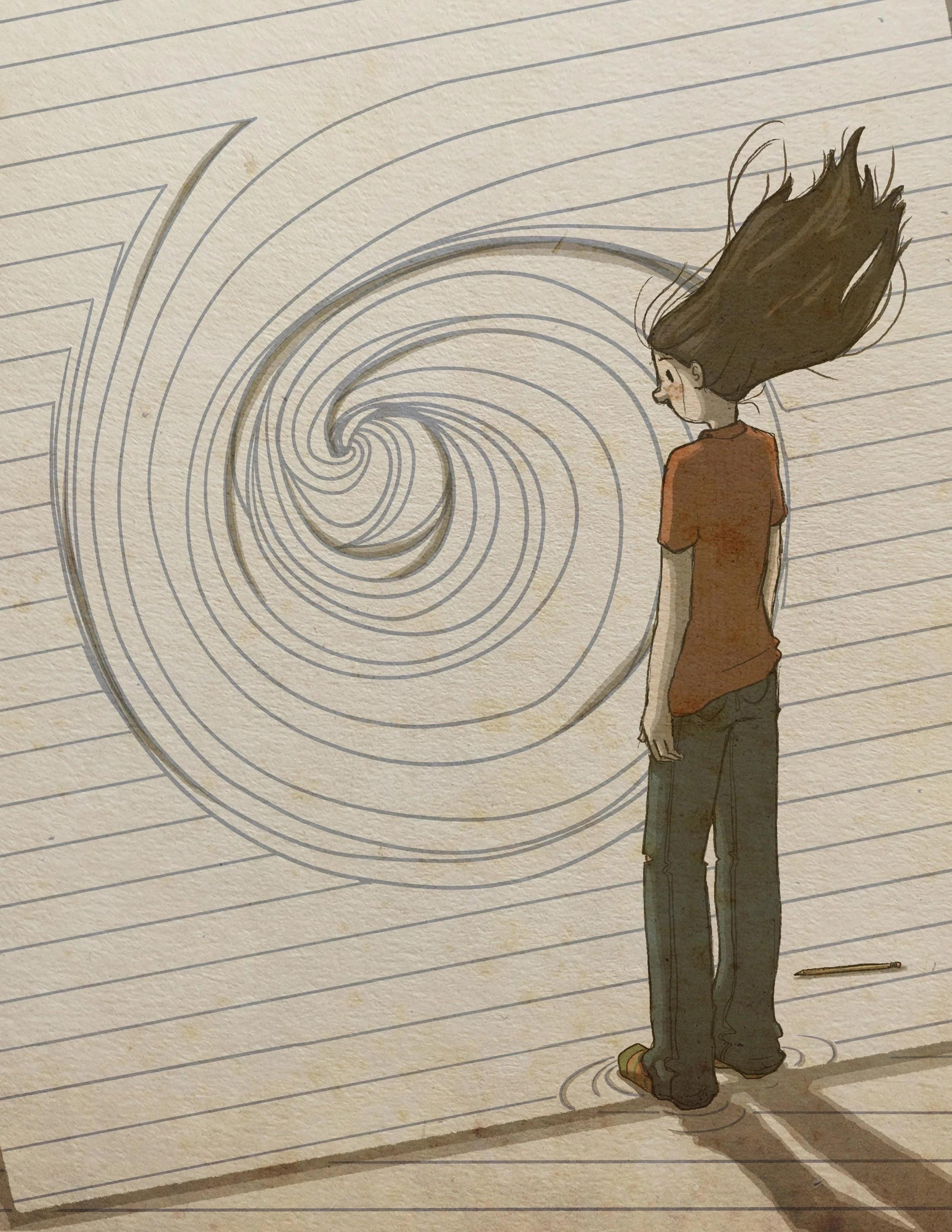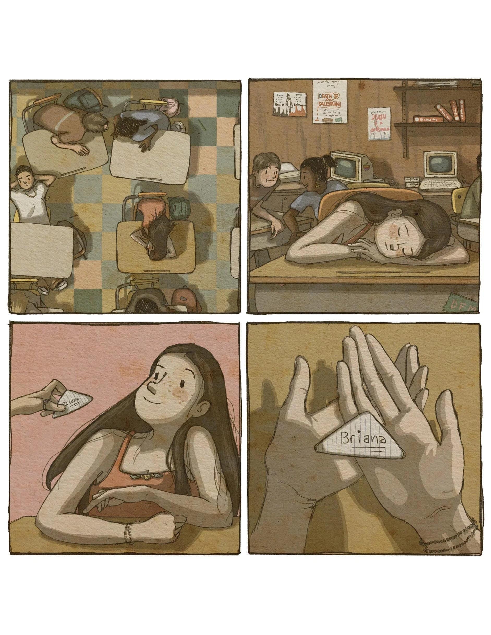 I don’t think it’s terribly spoiler-y to note that this is a book that in perhaps its most interesting section breaks with reality, and has its main character fall into the papers she spends so much time drawing and writing notes upon. The decision to do this long after the book has endeared young Briana to us, giving us rich insights into her family dynamics, interests, and relationships in the wider world. Because we know all of this about her, the ephemeral sequence provides really deep interiority, the sort it is often difficult to convey in comics. It’s a bold choice, and it’s one that pays off.