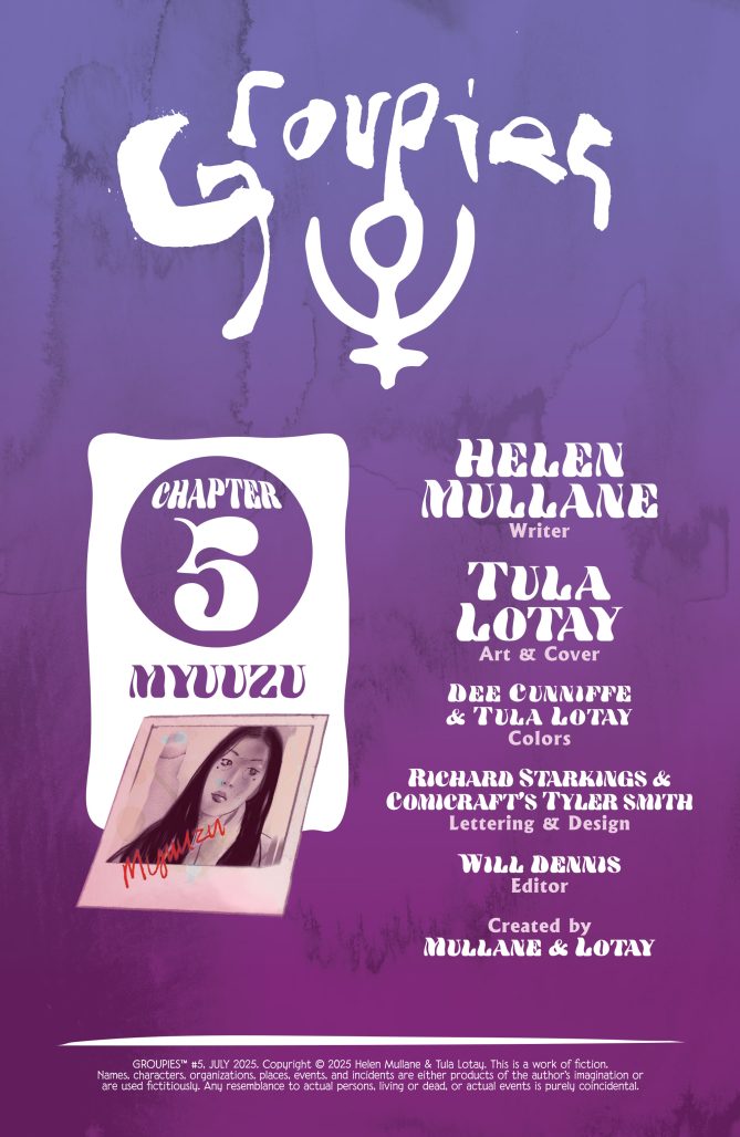 Comixology Originals series Groupies concludes with issue #5, available now. To send the series off before its trade paperback release from Mad Cave Studios this fall, writer Helen Mullane has compiled a playlist for the series with additional commentary. Read on for Mullane’s picks and a preview of Groupies #5.