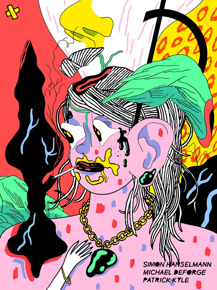 Simon Hanselmann, Patrick Kyle and Michael DeForge are going on tour together, an event that will doubtless span a thousand autobio comics. DeForge is the best known of the group, acclaimed for Lose, Ant Comix and many more of his abstractly horrifying enquiries into social systems human and animal. Hanselmann’s Megahex presents a sit-com for millennials, as an owl a witch and a cat struggle with depression and ennui. I have read Kyle’s Distance Mover yet, but the blurb has me sold: