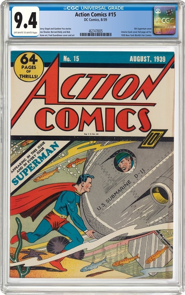 The family also discovered five early issues of Action Comics — #9 (CGC 6.5), #12 (CGC 9.0), #15 (CGC 9.4), #18 (CGC 9.0), and #21 (CGC 8.0).